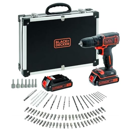 Black+Decker BDCDC18BAFC-QW Bohrschrauber (18V, 2X Li-Ion Schiebe-Akku, Planetengetriebe, LED-Arbeitsleuchte, 1A Ladegerät, inkl. 80-TLG. Zubehör im...