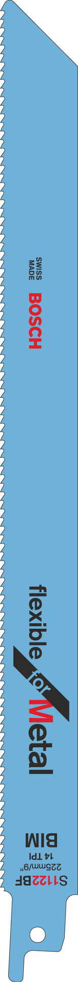 Das S 1122 BF Flexible für Metall Säbelsägeblatt ist für bündiges Schneiden in Metall optimiert. Seine Länge von 225 mm und die Stundard-Wundstärke von 0,9 mm ermöglichen exzellente bündige Schnitte. Zudem verfügt es über eine Zahnteilung von 1,8 mm, die Arbeiten bei hohen Geschwindigkeiten ermöglicht. Das Blatt aus Bimetall ist für das Schneiden von Stahl mit normaler Stärke vorgesehen, während die Zahnteilung von 1,8 mm ideal für das Schneiden von Rohren und Profilen mit einer Dicke von 3–8 mm ist. Die Stundardlänge des Säbelsägeblatts von 225 mm bietet eine Schnittleistung von bis zu 175 mm. Geeignet für Säbelsägen mit 0,5-Zoll-Universalschaftsystemen. Werkstoff: BIM, Zahnausführung: geschränkt, gefräst, Zahnteilung [mm] / TPI: 1,8 / 14, Abmessungen LxBxD [mm]: 225 x 19 x 0,9, Einsatzbereiche: starke Bleche (3-8 mm), massive Rohre/Profile (ø <175 mm), flexibler Bündigschnitt, schneller Schnitt, Typ: S 1122 BF