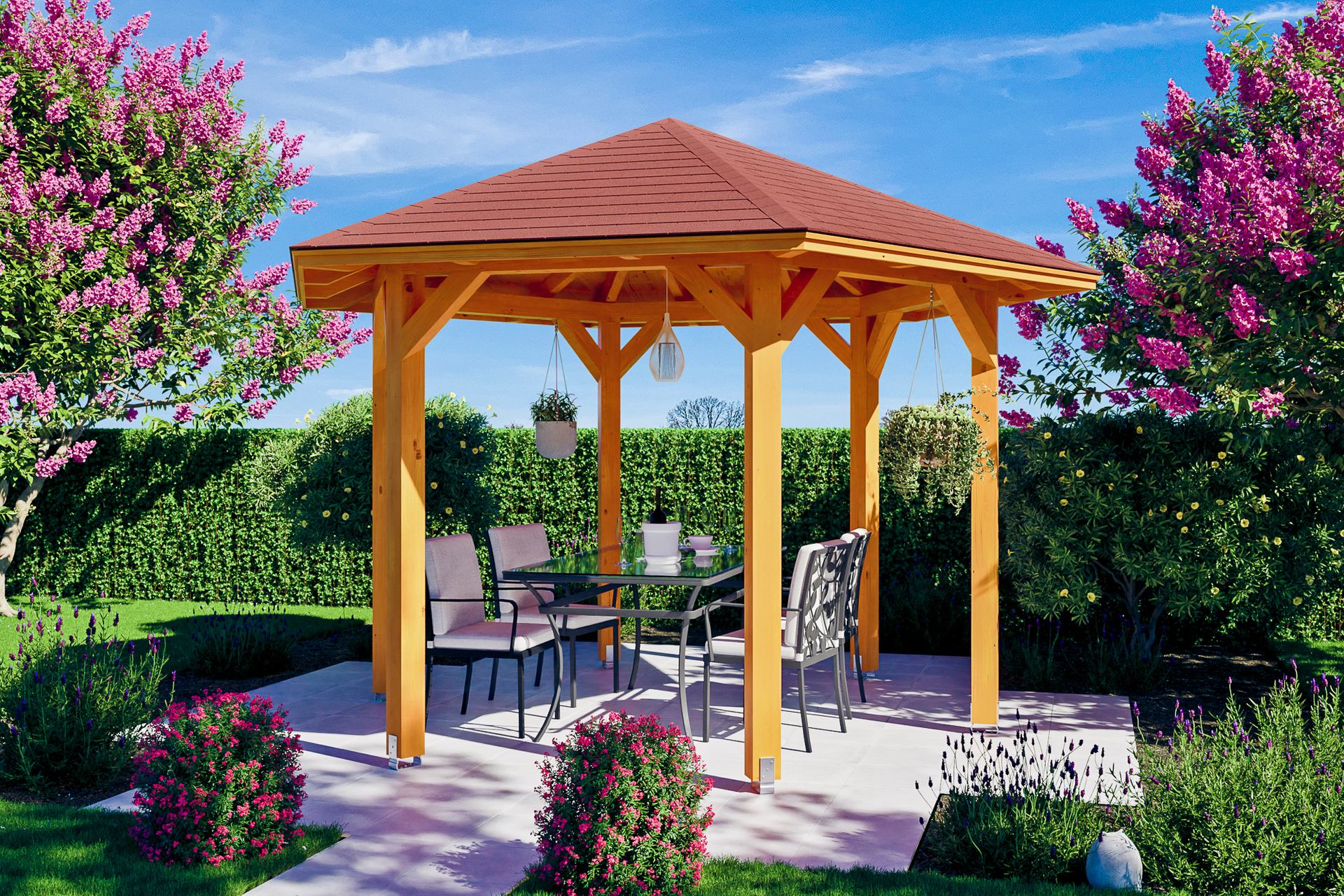 Das Dach wird mit 20 mm starker Dachschalung zur Eindeckung mit Dachschindeln geliefert (Dachschindeln sind als Zubehör optional bestellbar).