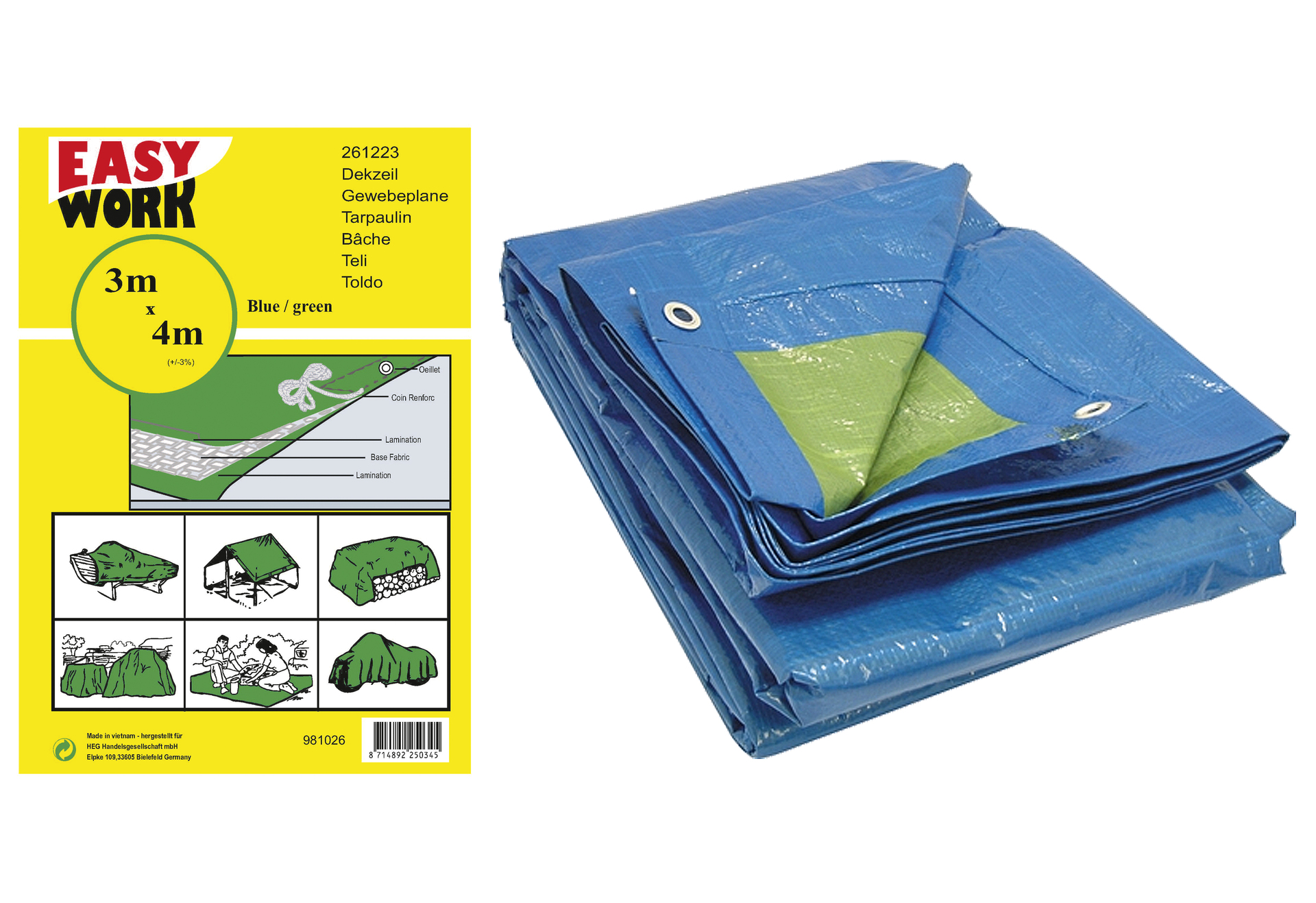 Abdeckplane blau 3x4m, TOKO