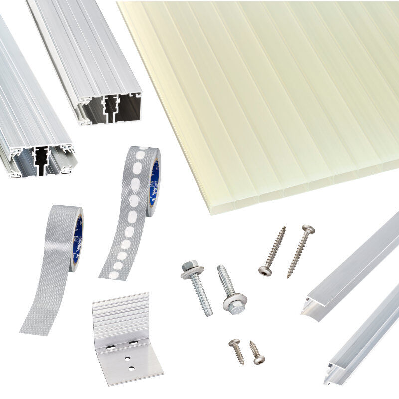 Climablue 16 Acryl Stegplatte Unser Komplettset enthält alles was Sie für ihr Terrassenbedachung benötigen. (Unterkonstruktion und Zierklemmdeckel nicht enthalten) Die Doppelstegplatte Acryl climablue mit heat-stop-Schicht, reflektiert die Infrarotstrahlen der Sonne und reduziert dadurch die Hitzeentwicklung bis zu 75%. Die Stegplatte besitzt eine sehr gute Witterungsbeständigkeit, beste UV-Beständigkeit und ebenso eine No – Drip – Beschichtung, welche die Bildung von Tropfwasser verringert. Im Gegensatz zum einfachen Verlegeprofil sind beim hochwertigen Verlegeprofil bereits die Dichtlippen auf Ober- und Unterprofil eingezogen. Diese sorgen für eine hervorragende Abdichtung der Stegplatten. Außerdem verfügt das Unterprofil vom hochwertigen Verlegeprofil zusätzlich über Belüftungsrillen, die für eine optimale Luftzirkulation zwischen Profil und Unterkonstruktion sorgen. Der integrierte Schraubkanal sorgt zudem für eine optimale Verschraubung und Montage der Verlegeprofile. Verfügbare Längen in m: 2,00 – 2,50 – 3,00 – 3,50 – 4,00 – 5,00 – 6,00 – 7,00 Es handelt sich um feste Längen. Bitte geben Sie Ihr Wunschmaß ein, wir schneiden die Platten auf Ihr Wunschmaß zu und legen die Reststücke der Lieferung bei. Hinweise Bei zusätzlicher Montage eines Sonnensegels oder Ähnlichem, muss für eine optimale Belüftung ein Mindestabstand von 40cm gegeben sein, um Hitzestaus zu vermeiden. Nicht geeignet bei landwirtschaftlicher Tierhaltung, da die Ammoniaksäure das Material angreift! Hinweise zur Lagerung nach der Lieferung sind unbedingt zu beachten!