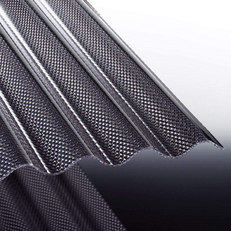 Lichtplatte Tejesinus Acrylglas Sinus 76/18 Wabenstruktur lichtgrau 3,0mm Stärke 1,045 m Breite Die Tejesinus Lichtplatte aus Acrylglas beeindruckt mit einer Breite von 1,045 m und einer effektiven Nutzbreite von ca. 0,981 m. In der Farbe Lichtgrau gehalten, bleibt die Platte dauerhaft vergilbungsfrei und bietet eine langlebige sowie zuverlässige Lösung. Mit einer Stärke von 3,0 mm überzeugt sie durch außergewöhnliche Bruchsicherheit und hohe Schlagzähigkeit. Die auf der Unterseite eingeprägte Wabenstruktur sorgt für eine angenehme Lichtbrechung und eine gleichmäßige Lichtverteilung. Der Hersteller sichert die Qualität mit einer 30-jährigen Garantie und einer 20-jährigen Hagelschlaggarantie ab, die die Robustheit und Langlebigkeit der Platte unterstreichen. Die Platte ist in die Brandklasse B2 eingestuft und erfüllt damit wichtige Sicherheitsanforderungen. Verwendungsbereich: Terrassenüberdachungen, Carports, Vordächer, Industriehallen, Rampenverglasungen Verfügbare Längen in m: 2,00 – 2,50 – 3,00 – 3,50 – 4,00 – 5,00 – 6,00 Es handelt sich um feste Längen. Bitte geben Sie Ihr Wunschmaß ein, wir schneiden die Platten auf Ihr Wunschmaß zu und legen die Reststücke der Lieferung bei. Acrylglas Lichtplatten sind nicht geeignet bei landwirtschaftlicher Tierhaltung, da die Ammoniaksäure das Material angreift! Hinweis: Bei zusätzlicher Montage eines Sonnensegels oder Ähnlichem, muss für eine optimale Belüftung ein Mindestabstand von 40cm gegeben sein, um Hitzestaus zu vermeiden. Hinweise zur Lagerung nach der Lieferung sind unbedingt zu beachten!