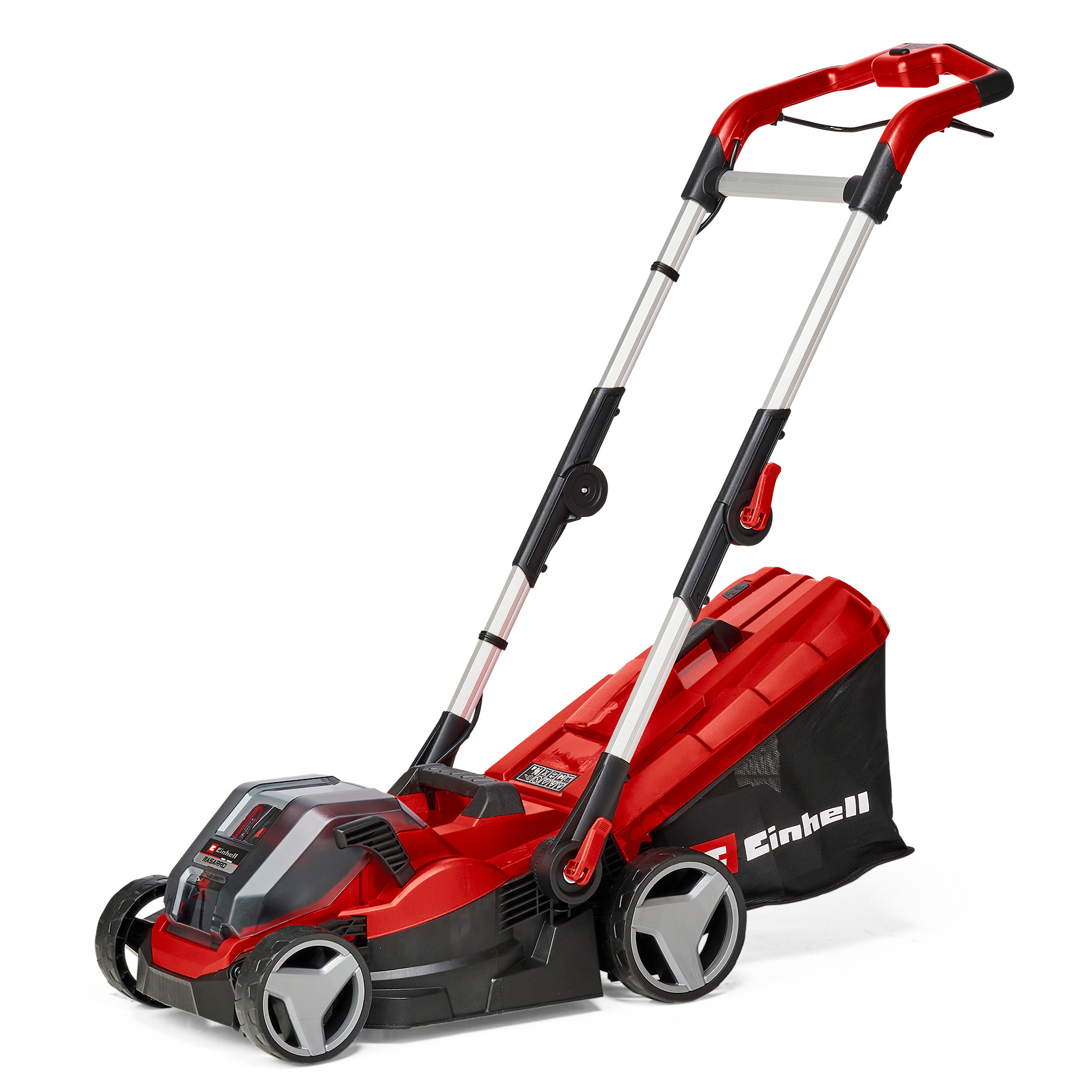 Der Einhell Akku-Rasenmäher RASARRO 36/34 (2×3,0Ah) ist ein sehr hochwertiges, zuverlässiges und leistungsstarkes Gerät für die kabellose Pflege kleinerer bis mittlerer Rasenflächen. Der 11,9 kg leichte und wendige Mäher hat eine Schnittbreite von 34 cm. Der Akku-Rasenmäher ist Teil der Einhell Power X-Change Familie, in der sich alle Akkus, Ladegeräte und Systemgeräte flexibel miteinander kombinieren lassen. Der Rasenmäher wird von der 36 V TWIN-PACK-Technologie angetrieben, bei der die Kraft von zwei starken 18 V Akkus für ausgedehnte Einsätze ohne lästiges Stromkabel kombiniert werden. Die fünfstufige, zentrale Schnitthöhenverstellung erlaubt die einfache, individuelle Einstellung der Schnitthöhe von 25 bis 65 mm. Der RASARRO 36/34 ist mit einem höhenverstellbaren und klappbaren Führungsholm ausgestattet. Dadurch kann er perfekt an jede Körpergröße angepasst und platzsparend verstaut werden. Als Highwheeler verfügt der RASARRO 36/34 über erhöhte Hinterräder, die das Arbeiten in schwierigem Gelände erleichtern. Seine großflächigen Räder schonen zudem den Rasen. Der große Grasfangkorb kann bis zu 30 Liter Schnittgut fassen und ist mit einer Füllstandanzeige ausgestattet, durch die jederzeit ersichtlich ist, wann eine Leerung erforderlich wird. Das langlebige Gehäuse besteht aus hochwertigem, schlagzähem Kunststoff. Ein praktischer Tragegriff sorgt für den einfachen Transport. Der Akku-Rasenmäher RASARRO 36/34 (2×3,0Ah) wird mit zwei 3,0 Ah Plus Power X-Change Akkus und zwei Ladegeräten geliefert. Der Mäher wird für Rasenflächen bis 300 m² empfohlen.