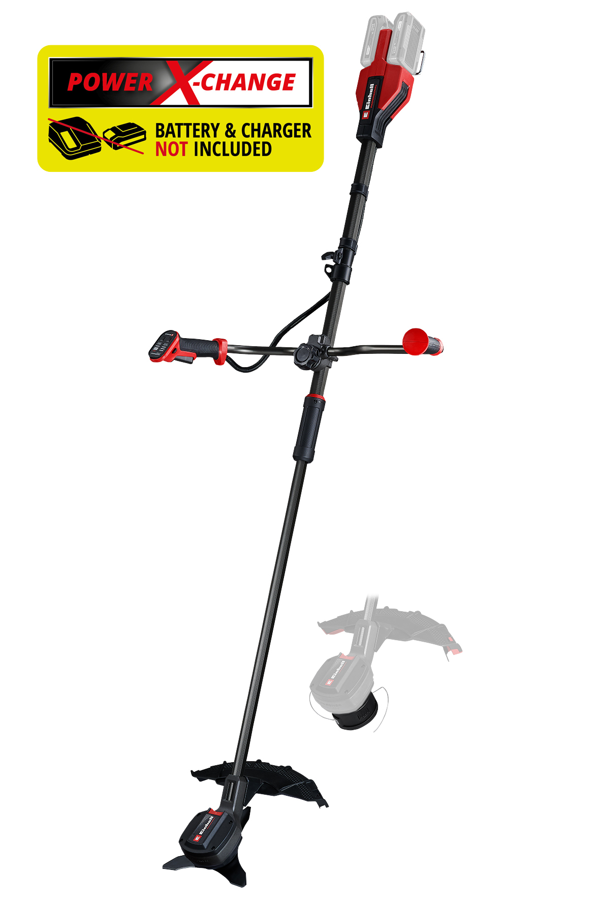 Die Einhell Professional Akku-Sense GP-BC 36/430 Li BL-Solo ist ein zuverlässiger Helfer für hohes Gestrüpp, Dickicht und Wildwuchs. Mit der 36 Volt Twin-Pack Technologie ist die kraftvolle Power X-Change Sense perfekt geeignet für den professionellen Einsatz im unwegsamen Gelände, an Hängen oder Böschungen. Angetrieben wird das Gerät von einem Einhell Brushless Motor. Dieser bürstenlose Motor bietet mehr Kraft und eine längere Laufzeit als herkömmliche Kohlebürsten-Motoren. Nach einer Online-Registrierung gelten 10 Jahre Garantie auf den Brushless-Motor. Die Akku-Sense wird mit einer Doppelfadenspule mit Tippautomatik sowie einem hochwertigen 3-Zahn-Messer geliefert. Per Spindle-Lock-System kann schnell und einfach zwischen Faden (43 cm Schnittbreite) und Metallmesser (25,5 cm) gewechselt werden. Der Schutzschild ist 2-teilig konstruiert und kann so an die Schnittbreite von Messer oder Faden, sowie zum genauen Arbeiten an Engstellen und Schrägen angepasst werden. Der Zweihandgriff mit Softgrip kann zum ergonomischen Arbeiten verstellt werden. Direkt am Griff des Bike-Handle integriert sind die 2-stufige, elektronische Drehzahlregulierung und die Akku-Kapazitätsanzeige, um den übrigen Ladestand der beiden Akkus jederzeit auf Knopfdruck im Blick zu haben. Die beiden Akkus werden durch den integrierten Stahlrahmen-Akkuschutz vor Stößen geschützt. Der hochwertig eloxierte Aluminium-Führungsholm ist dank Split Shaft teilbar und erleichtert so den Transport und die platzsparende Aufbewahrung des Freischneiders. Zusätzlich ist eine praktische Wandhalterung im Gehäuse integriert. Zum ergonomischen Arbeiten wird ein komfortabler Rucksack-Tragegurt mitgeliefert. Die Einhell Professional Akku-Sense GP-BC 36/430 Li BL-Solo wird ohne Akku und Ladegerät geliefert. Diese sind separat, zum Beispiel als praktisches Starter-Set, erhältlich.