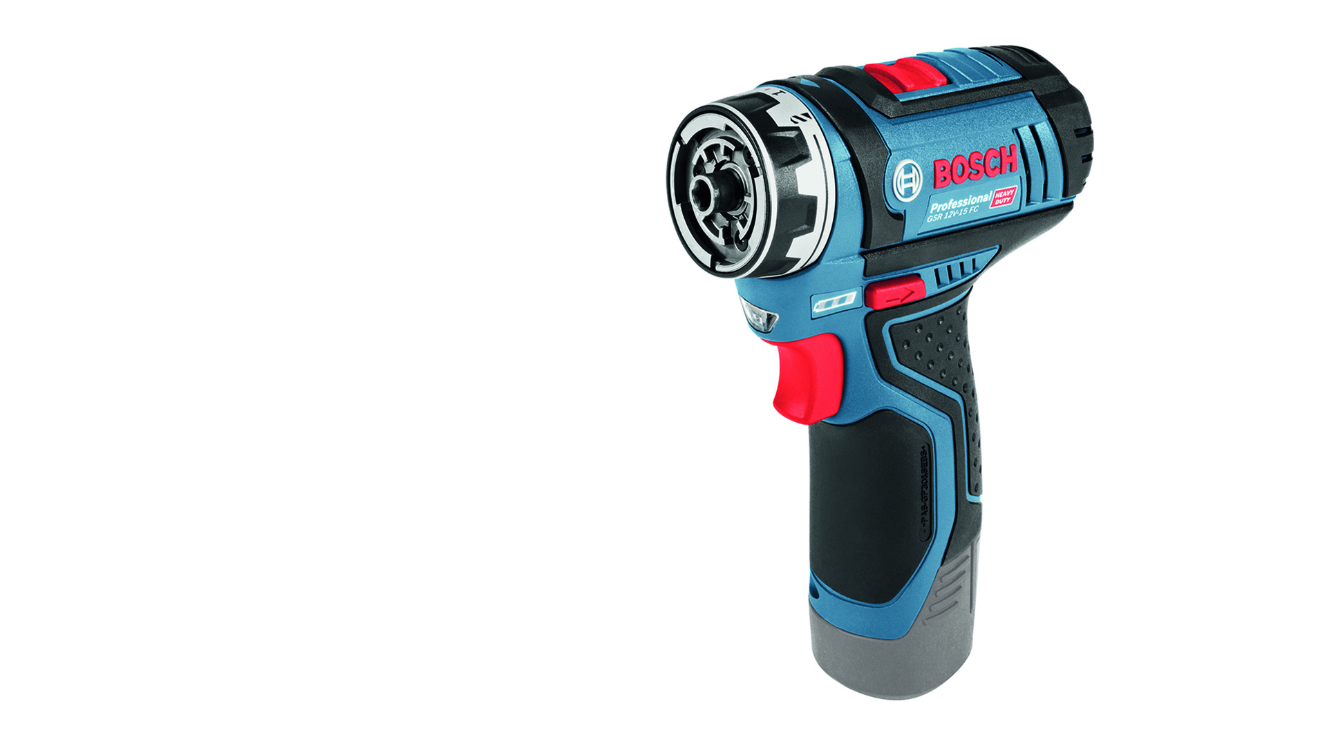 Akku-Bohrschrauber GSR 12V-15 FC. Redefine your limits – Flexibilität durch fünf Lösungen in einem einzigen Kompaktwerkzeug. Vielseitig: Fünf Optionen zur Wahl – Bohrschrauber mit magnetischem Bit-Halter, arretierbarem Bit-Halter, Bohrfutter, Winkelaufsatz und Exzenteraufsatz. Kompakt: Perfekt für schwer zugängliche Bereiche – dank der extrem kompakten BauForm. Leistungsstark: Überzeugende Leistung – dank 30 Nm Drehmoment. Akku und Ladegerät nicht im Lieferumfang enthalten. Solo Version, L-BOXX 102 (1 600 A00 1RP), Bohrfutteraufsatz GFA 12-B (1 600 A00 F5H), 1/2 L-BOXX-Einlage für Gerät und Ladegerät (1 600 A00 2UV), 1/2 L-BOXX-Einlage für 12-V-Adapter (1 600 A01 1UW).