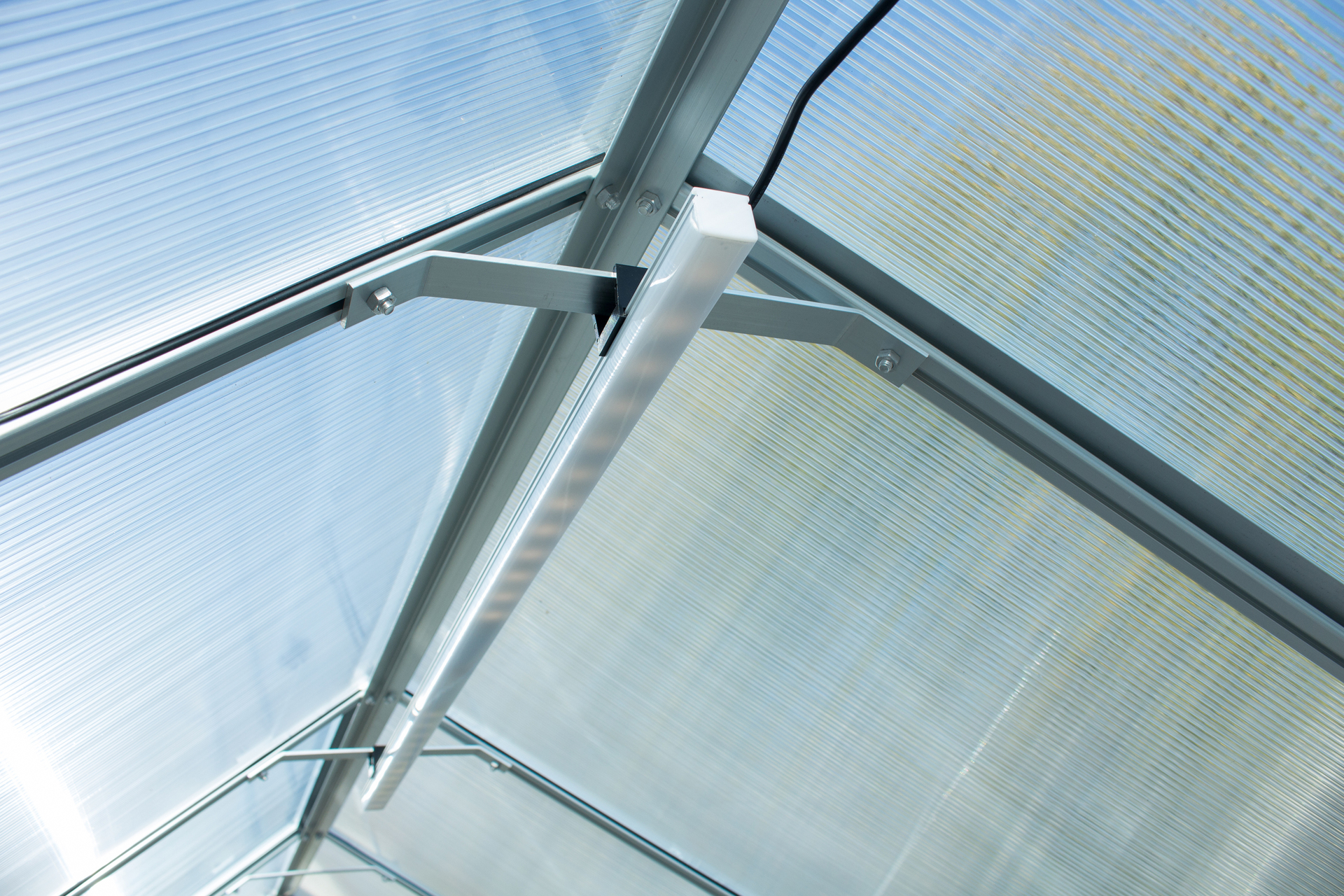 Der selbststehende Aluminium-Tisch von Vitavia ist mit einer oder zwei Ebenen ausgestattet. Der Rahmen besteht aus eloxiertem Aluminium oder bei den farbigen Varianten aus pulverbeschichtetem Aluminium. Je nach Wahl erfolgt die Lieferung mit oder ohne die 16 mm starke Hohlkammerplatte aus Polycarbonat.