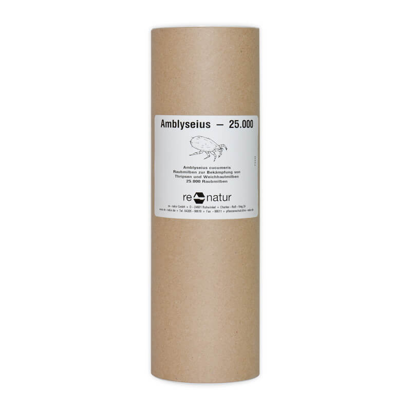 Raubmilben in Vermiculit/Kleie zum Streuen gegen Blatt- und Blütenthrips (nur Junglarven) und Weichhautmilben. Hat auch eine Nebenwirkung gegen Spinnmilben. A. cucumeris lebt auf der Pflanze und tötet die Schädlinge durch Aussaugen. Vorbeugender Einsatz empfohlen.