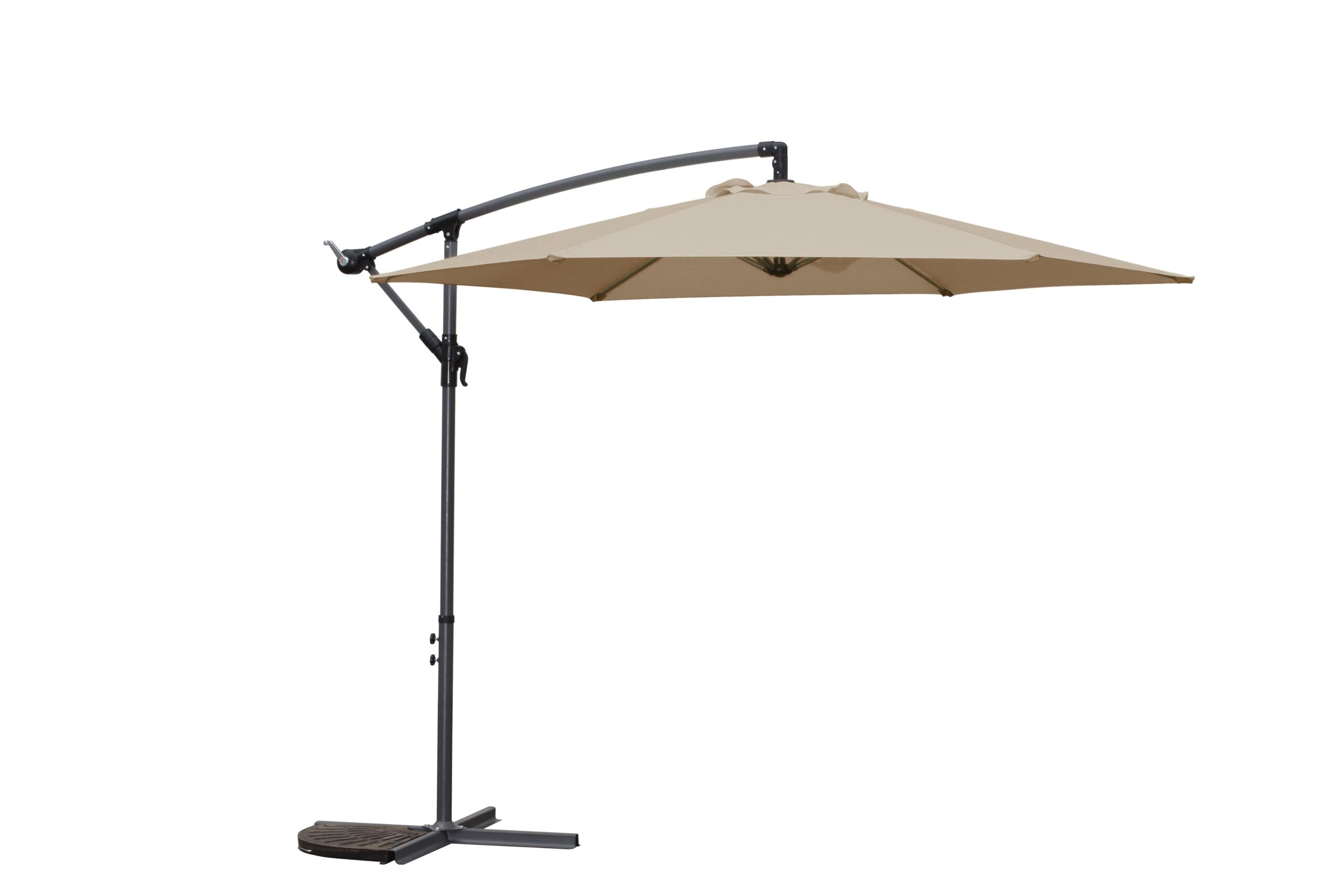 Ampelschirm mit Aluminiumgestell mit Ständer, Bezug aus 100% Polyester. UV-Schutzfaktor 50+ (höchste Stufe).
