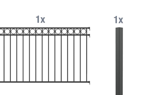 1 Zaunpfosten Chaussee, Circle, Aluminium, anthrazit, zum Einbetonieren51x51/1700, 1 Zaunfeld Circle, Aluminium, anthrazit, 2000×1200