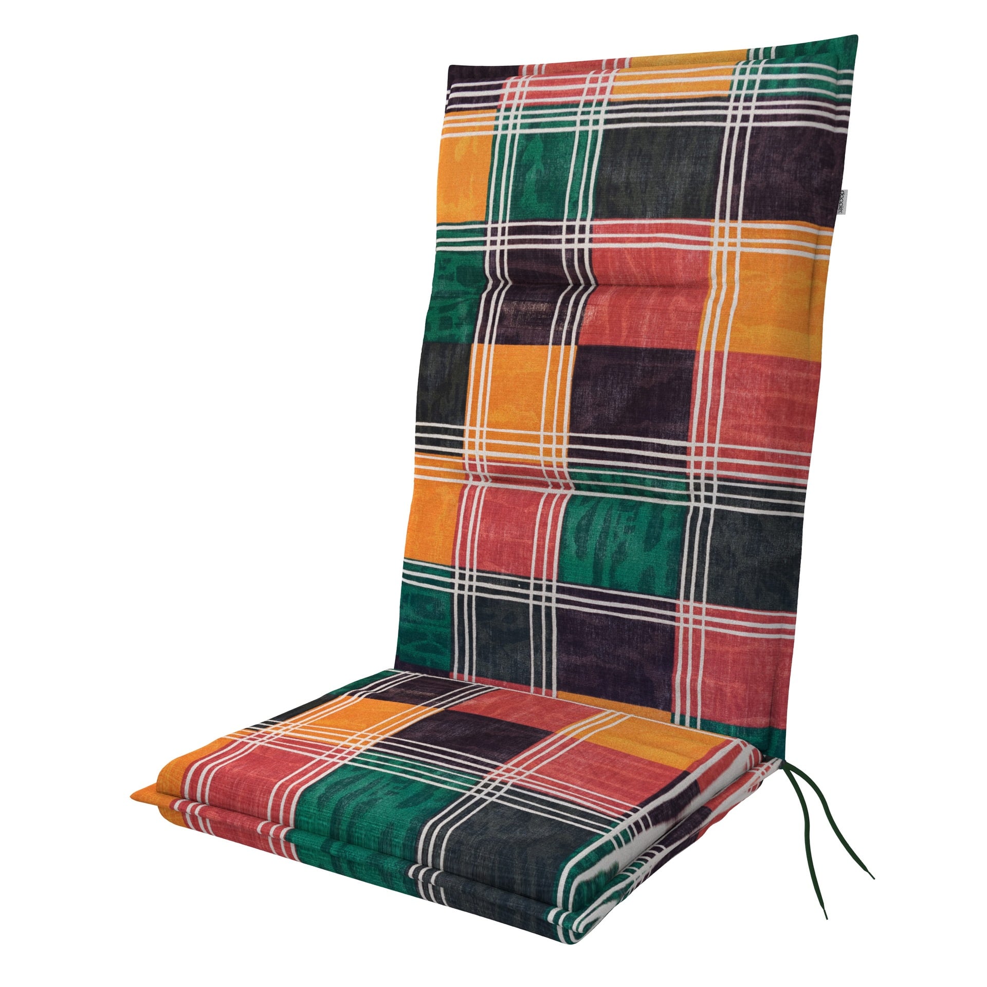 Die doppler Sitzauflage Hochlehner SPOT ist für alle Garten- und Terrassenfreunde genau die richtige Wahl! Mit ihren Abmessungen von ca. 119 x 48 x 5 cm passt sie auf viele herkömmliche Gartenstühle und ist durch ihre Auflagenstärke von 5 cm ein wahres Komfortwunder. Die Quersteppung im oberen Drittel der Auflage und der Stehsaum verleihen der Sitzauflage zusätzlich ein optisches Highlight. Dank der seitlichen Bindebänder und dem Rückhalteband wird die Gartenmöbelauflage einfach und mühelos am Stuhl befestigt. Somit wird ein unangenehmes Verrutschen der Auflage verhindert. Durch die Schaum- / Vliesfüllung und der Stoffzusammensetzung von 55 % Polyester, 45 % Baumwolle ist diese Sitzauflage sehr langlebig und pflegeleicht. Sollte sich doch einmal Schmutz auf der Auflage befinden, so kann diese mittels Handwäsche gereinigt werden. Maße können von den angegebenen Werten produktionsbedingt abweichen.