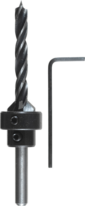 Holzspiralbohrer, mit verstellbaren Aufstecksenker 5-schneidig WS und Tiefenstop, Schaft zylindrisch, für Weich- und Hartholz.