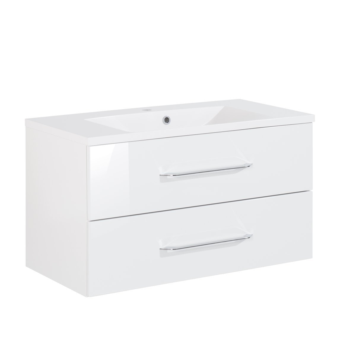 Der Fackelmann Waschtischunterschrank hat eine Breite von 900m und ist komplett in Weiß gehalten. Er hat zwei Schübe, die mit einem Soft-Close-System ausgestattet sind, welches ein sanftes und leises Schließen ermöglicht. Der Waschtischunterschrank kommt im Set mit dem passenden Waschbecken aus Mineralguss. Das Becken ist in weiß gehalten und mit einem Überlaufsystem und einer Hahnlochbohrung ausgestattet. Das Möbel-Set ist Teil der Serie B.clever und überzeugt mit einer kurzen Lieferzeit.