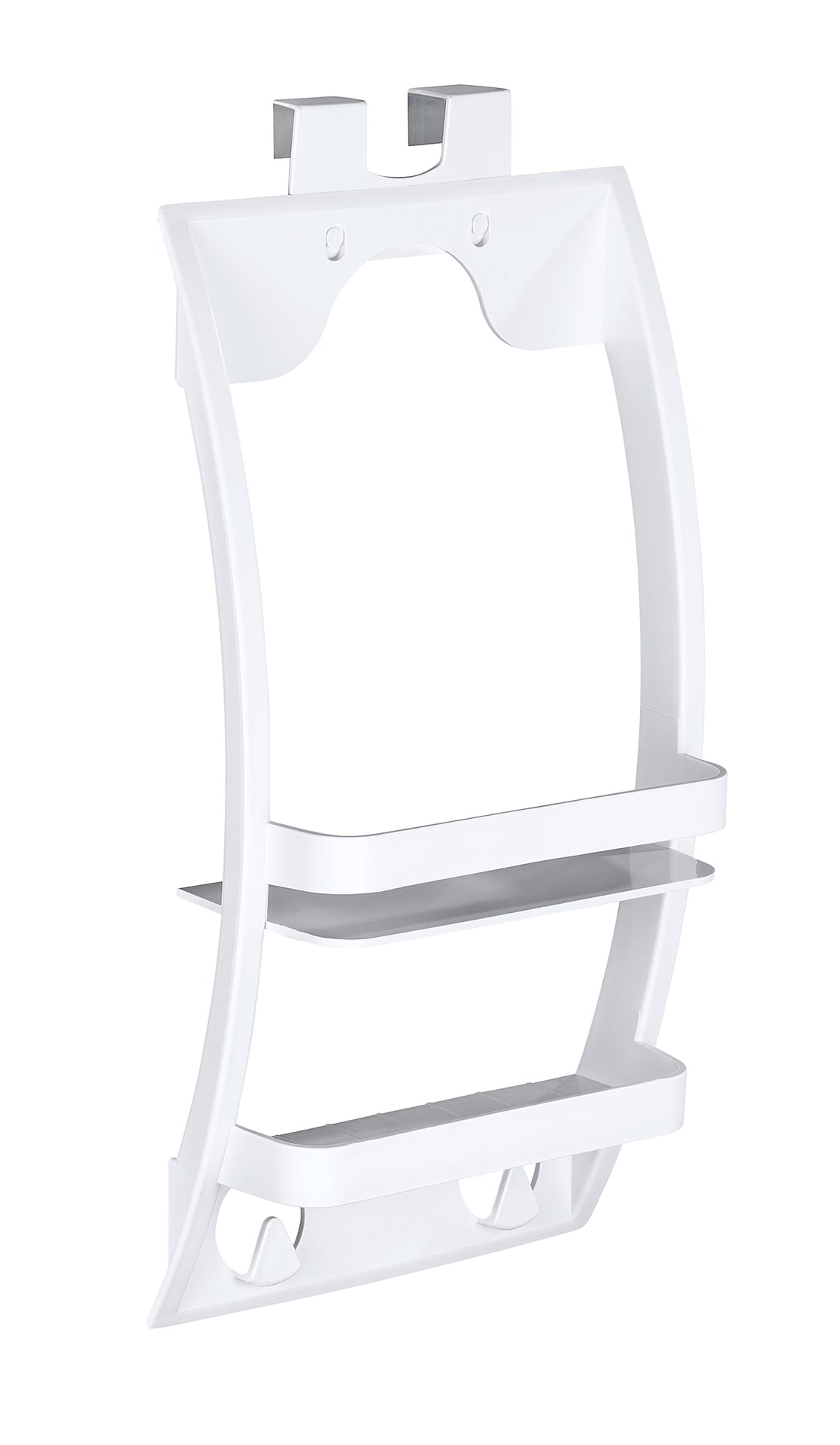 Zusätzlich bietet das Regal noch 2 Haken für z.B. den Waschhandschuh. Der praktische Helfer ist aus robustem, weißem Kunststoff gefertigt. Die Montage ist kinderleicht. Entweder wird das Regal mit Hilfe des Adapters einfach über die Duschwand oder Türe gehangen oder mit Schrauben an der Wand befestigt.