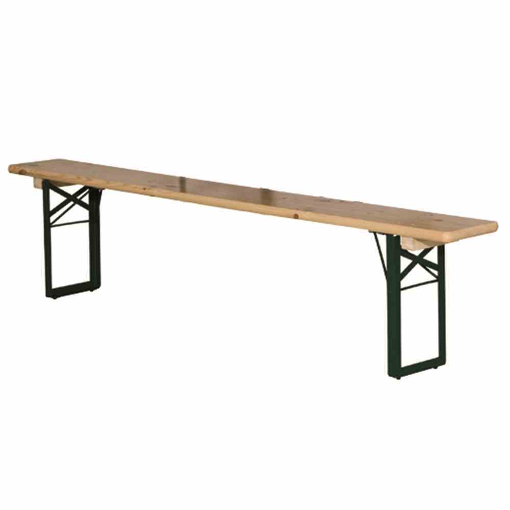 Bank für Festzeltgarnitur, 220 cm, Gestell aus Stahl pulverbeschichtet in grün, Flächen aus Kiefernholz in natur
