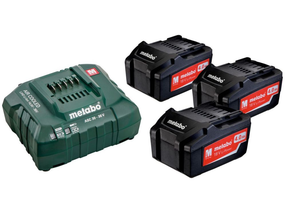 Das Basic-Set von Metabo besteht aus 3 x Li-Power Akkupack 18 V/4,0Ah und 1 x dem Ladegerät ASC 30-36V.