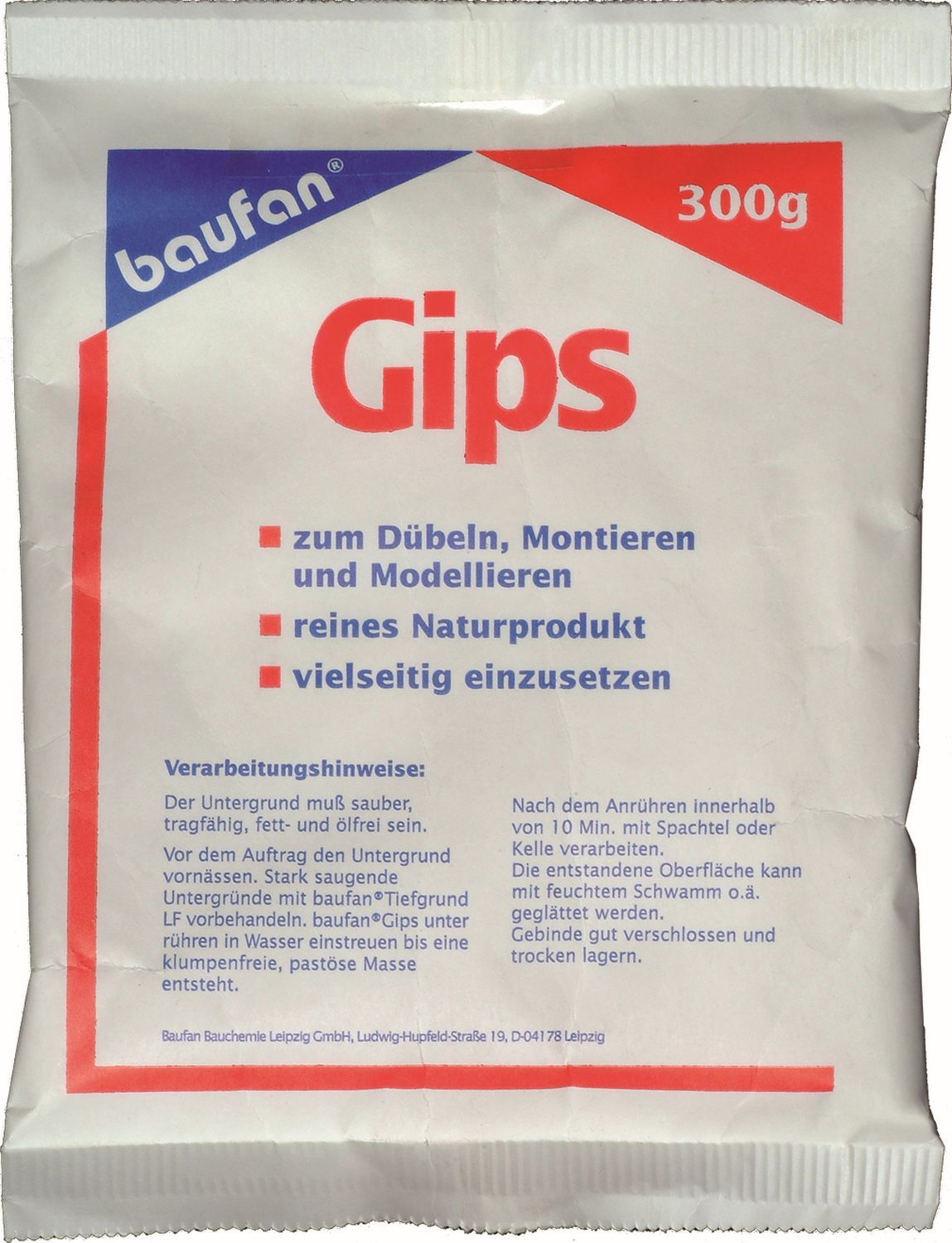 Ein Pulverprodukt, das nach Wasserzugabe in kurzer Zeit fest wird. Reiner Naturgips für Montage-, Renovierungs- und Bastelarbeiten.