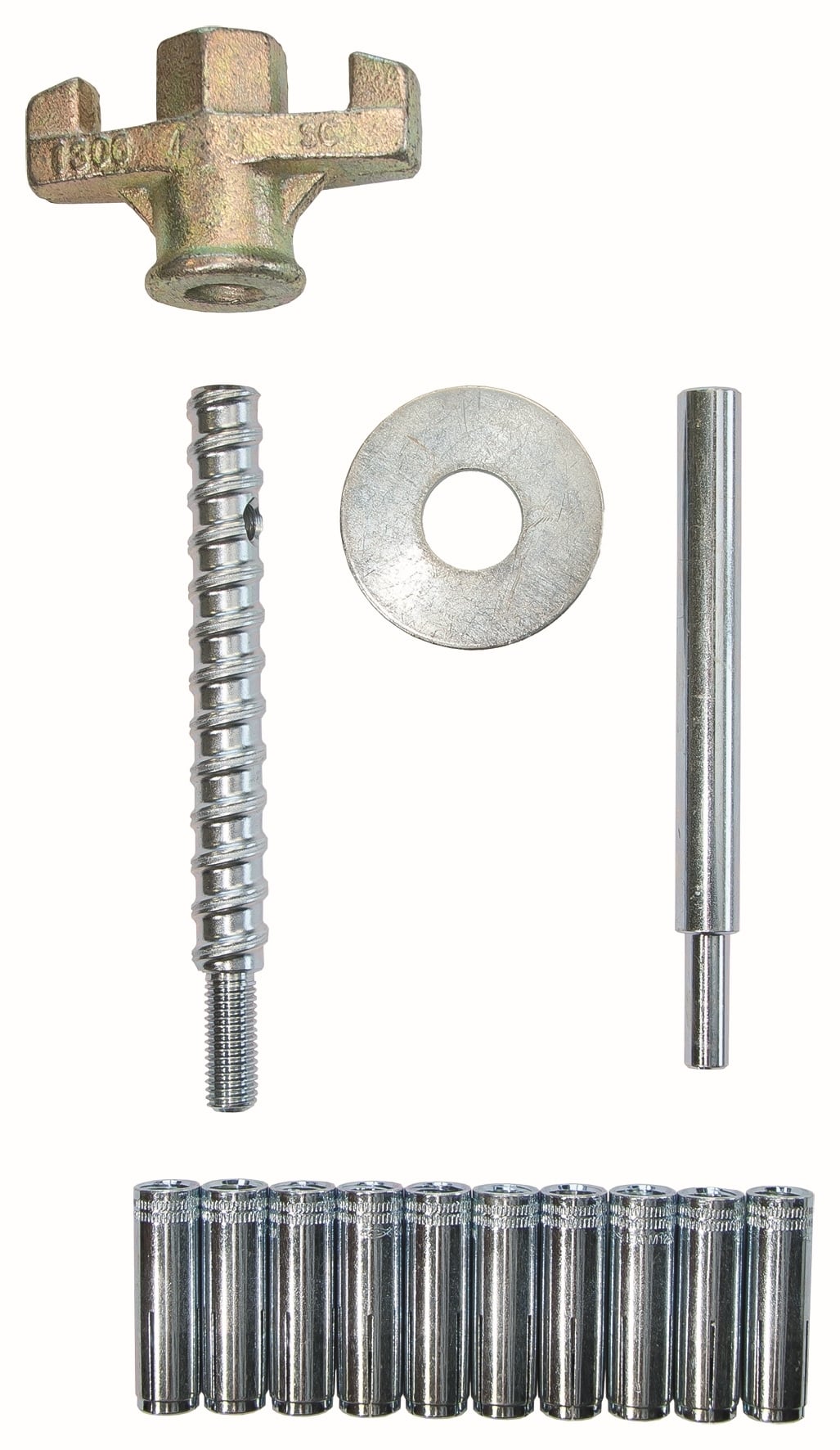 inkl. Schnellspannschraube | Flügelmutter | Unterlegscheibe | 10 Einschlagdübel M 12 | Ø 16 mm | 1 Dübelsetzwerkzeug