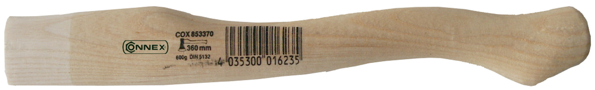 Ersatz-Beilstiel aus Eschenholz, mit Keilschlitzen und in Kuhfuß-Form. Für 600 g Beil geeignet. DIN 5132