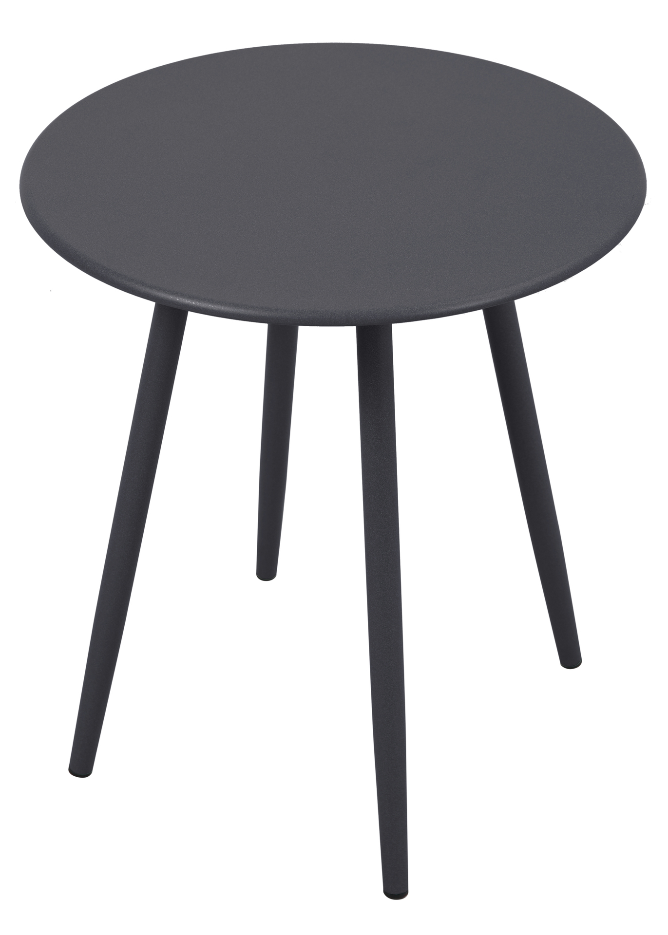 Beistelltisch aus Stahl rund, Oberfläche dunkelgrau pulverbeschichtet.