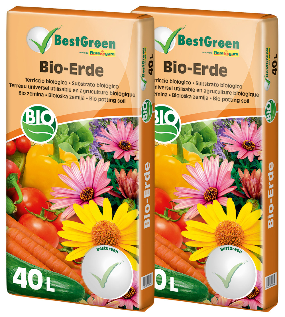 BestGreen Bio-Erde ist eine torfreduzierte Bio-Allrounderde für das ökologische Gärtnern. Durch ihre bewährte Zusammensetzung aus ausgesuchten Torfqualitäten Grünschnittkompost Bio-Holzfaser und einem organischen und einem organisch-mineralischen Dünger ist sie ganz auf die Bedürfnisse Ihrer Pflanzen abgestimmt. Wertvolle Torfqualitäten geben der Erde eine gute Wasserhaltekraft und erleichtern die Wasserversorgung. Der Grünschnittkompost trägt zur Nährstoffversorgung der Pflanzen bei und belebt die Erde. Bio-Holzfaser verbessert die Luftkapazität und Wasserleitung in der Erde und unterstützt damit eine optimale Wurzelentwicklung der Pflanzen. Die hochwertigen Bio-Dünger fördern das gesunde Pflanzenwachstum – beste Voraussetzung für natürliche Blütenpracht und reiche Ernte.