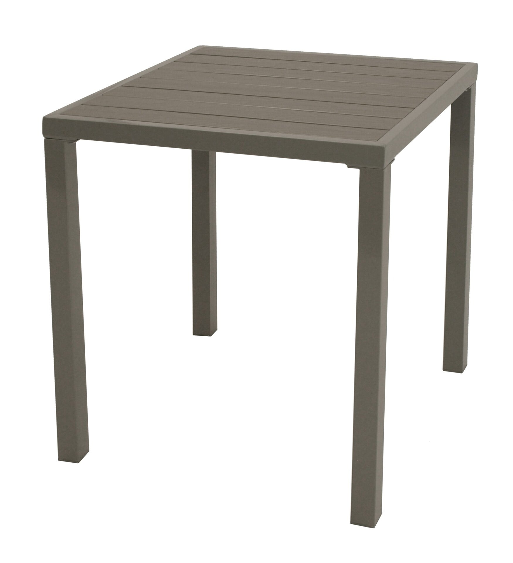 Bistrotisch 60x60x73cm mit Gestell aus Stahl, silbergrau. Graue Tischplatte aus pflegeleichtem Kunstholz.