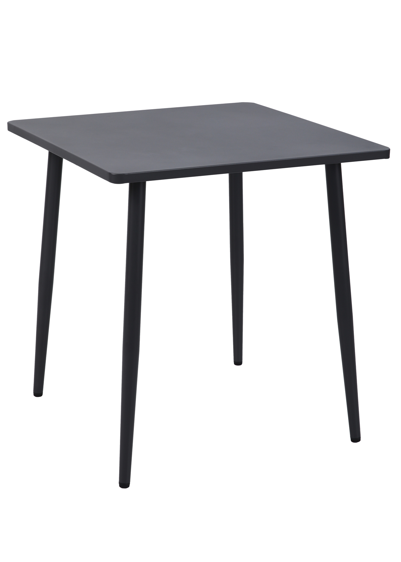 Bistrotisch aus Stahl quadratisch, Oberfläche dunkelgrau pulverbeschichtet.