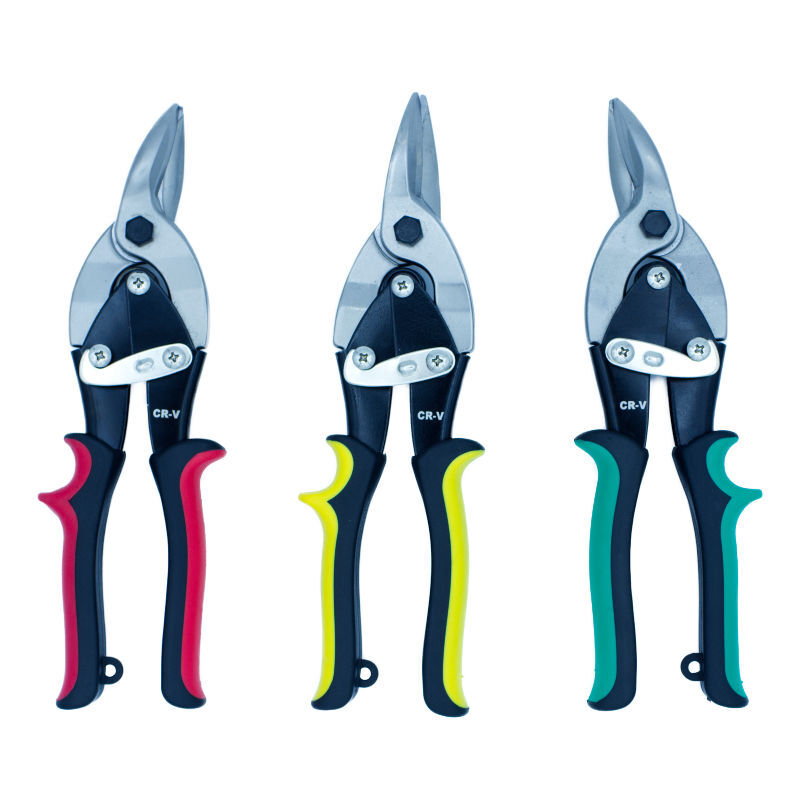 Diese Blechscheren sind das passende Handwerkzeug für präzise Zuschnitte von Blechen. Die gezahnte Schneide aus gehärtetem Chrom-Vanadium-Stahl greift sicher ins Material und ermöglicht kontrollierte Schnitte ohne Verrutschen – ideal für Stahlblech bis ca. 1,0 mm und Edelstahl bis ca. 0,6 mm. Varianten & Materialeinsatz Die Schere ist je nach Ausführung für linken, rechten oder geraden Schnitt erhältlich. Geeignet zum Schneiden von Blechen aus Stahl, Edelstahl, Aluminium, Zinn und ähnlichen Metallen, etwa für Dach- und Fassadenbleche, Lüftungskanäle, Profile, Blechabdeckungen oder Ausbesserungsarbeiten. Technische Merkmale Die robuste Scherenkonstruktion mit Verbundhebel sorgt für hohe Schneidkraft bei gleichzeitig geringem Kraftaufwand. Die gezackten Scherenblätter aus hochwertigem Chrom-Vanadium-Stahl sind hochfrequenz-gehärtet und damit verschleißarm und langlebig. Zwei-farbige, gummierte Griffe liegen rutschhemmend in der Hand und ermöglichen eine gute Kraftübertragung. Eine integrierte Sicherung hält die Schere bei Nichtgebrauch geschlossen und schützt die Schneiden beim Transport. Einsatzgebiete & Vorteile Ob Zuschnitt von Trapezblech, Kantteilen, Blechstreifen, Lüftungsblechen oder Abdeckungen: Die Blechscheren ermöglichen exakte Schnitte, auch an Kanten, in Ecken und an schwer zugänglichen Stellen (links/rechts-Ausführungen). Gerade Schnitte gelingen mit der geraden Variante besonders sauber – ideal für längere Schnitte entlang von Markierungen. Hohe Schnittqualität, gute Führung und die kraftsparende Hebelwirkung reduzieren Nacharbeit und machen die Schere zum praktischen Begleiter für Dachdecker, Metallbauer und ambitionierte Heimwerker. Produkteigenschaften Ausführung wählbar: linker, rechter oder gerader Schnitt Geeignet für Stahlblech bis ca. 1,0 mm und Edelstahl bis ca. 0,6 mm Gezahnte Schneiden aus gehärtetem Chrom-Vanadium-Stahl Verbundhebel-Design für hohe Schneidkraft bei geringem Kraftaufwand Ergonomische, gummierte Griffe für sicheren Halt und präzise Führung Mit Sicherungsriegel zum sicheren Verschließen der Schere beim Transport