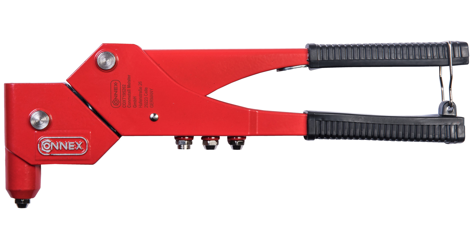 Setzen Sie Blindnieten schnell und sicher an der gewünschten Stelle mit dieser Blindnietzange von CONNEX und sorgen Sie somit für stabile Verbindungen zwischen flachen Bauteilen. Durch den vollständig drehbaren Kopf lässt sich das Werkzeug stets angenehm handhaben und Sie erreichen problemlos auch schwierige Stellen. Die Verschlussöse am Griffende ermöglicht ein platzsparendes Verstauen der Zange. Vier Einsätze für unterschiedliche Größen zwischen 2,4 und 4,8 mm sind ebenfalls in der Packung enthalten.
