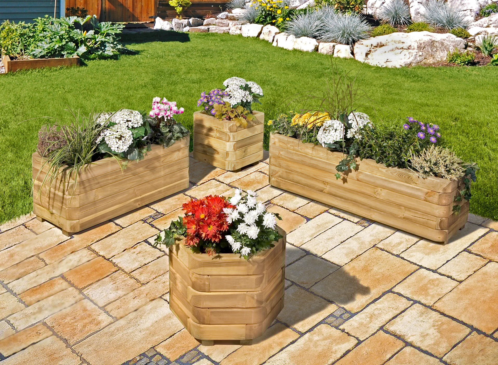 Blumenkasten in verschiedenen Größen, ausgeschlagen mit stabiler Folie