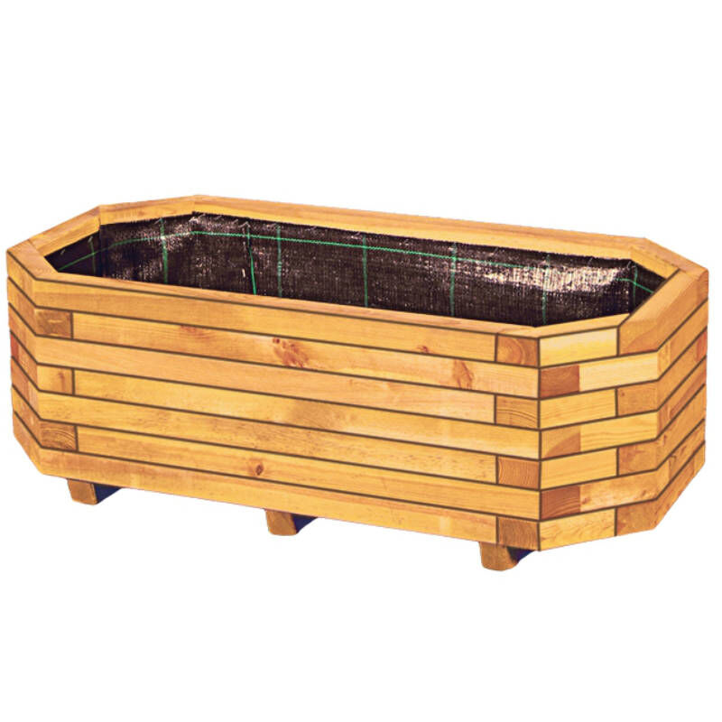 KÄTHE-Blumenkübel – robuster Holzkübel mit abgeschrägten Ecken Formschöner Pflanzkübel für Garten, Terrasse und Balkon Der KÄTHE-Blumenkübel besteht aus robustem Kiefer- und Fichtenholz, das druckimprägniert grün behandelt wurde. Mit den Maßen 100 x 50 x 35 cm bietet der Pflanzkübel viel Platz für Blumen, Kräuter oder kleine Sträucher. Die abgeschrägten Ecken verleihen ihm ein besonderes Design, das sich harmonisch in verschiedene Außenbereiche einfügt. Hochwertige Verarbeitung und langlebiges Material Die stabilen Kanthölzer mit einer Stärke von 45 x 45 mm sorgen für eine solide Konstruktion. Die Druckimprägnierung schützt das Holz zuverlässig vor Witterungseinflüssen und sorgt für eine lange Lebensdauer im Außenbereich. Vielseitig kombinierbar mit Rankgittern Der KÄTHE-Blumenkübel lässt sich ideal mit den Rankgittern WILLI, PETER oder HORST kombinieren. So können Kletterpflanzen wie Clematis oder Efeu zusätzlich in Szene gesetzt werden und eine attraktive Begrünung entstehen lassen. Technische Daten: Material: Kiefer/Fichte, druckimprägniert grün Maße: 100 x 50 x 35 cm (B x T x H) Kanthölzer: 45 x 45 mm Form: rechteckig mit vier abgeschrägten Ecken inklusive Folieneinsatz kombinierbar mit Rankgittern WILLI, PETER und HORST
