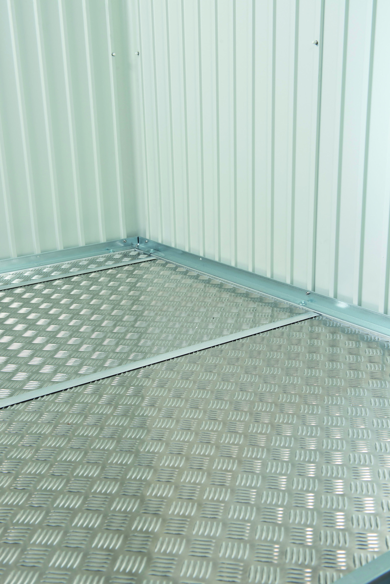 Hochwertiger Alu-Riffelblechboden, elegant und funktionell. Der Boden besteht je nach Hausgröße aus 1 bis 5 Segmenten inklusive Verbindungsschienen. Zur optimalen Verlegung der Alu-Bodenplatten ist der Alu-Bodenrahmen erforderlich. Beachten Sie bitte, dass die ALU-Bodenplatte mit einer Schüttung oder XPS-Hartschaumplatten in einer Stärke von ca. 2-3 cm zu unterfüttern ist (nicht im Lieferumfang enthalten).