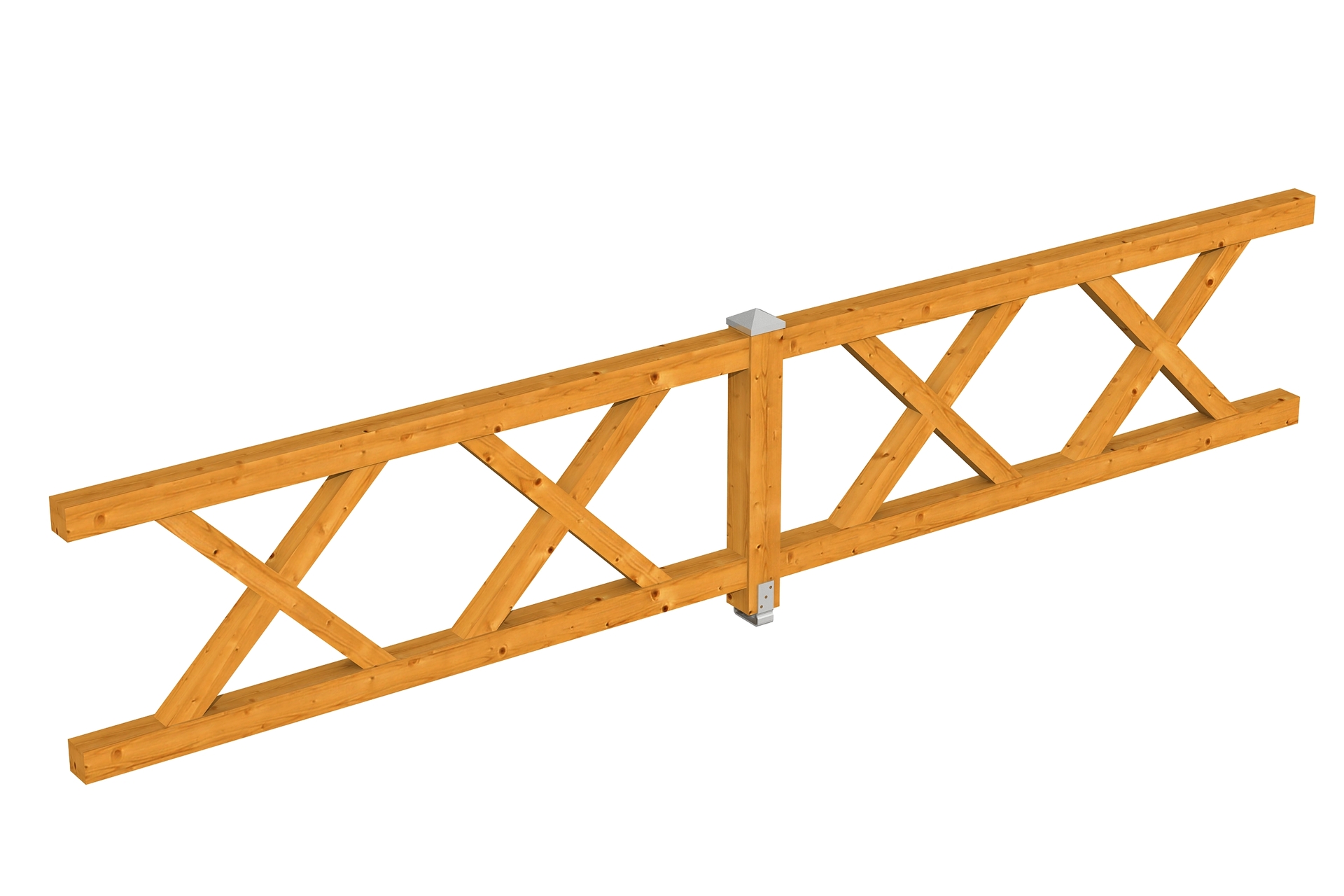 Die dekorative SKAN HOLZ Brüstung mit massiven Andreaskreuzen aus Konstruktionsvollholz eignet sich für SKAN HOLZ Pavillons aus Leimholz mit einem Pfostenabstand von 465 cm.