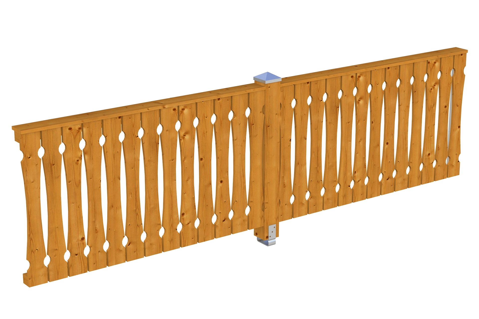 Die dekorative SKAN HOLZ Brüstung aus Balkonschalung für die Seite eignet sich für SKAN HOLZ Terrassenüberdachungen aus Leimholz mit einer Tiefe von 400cm und 389cm.
