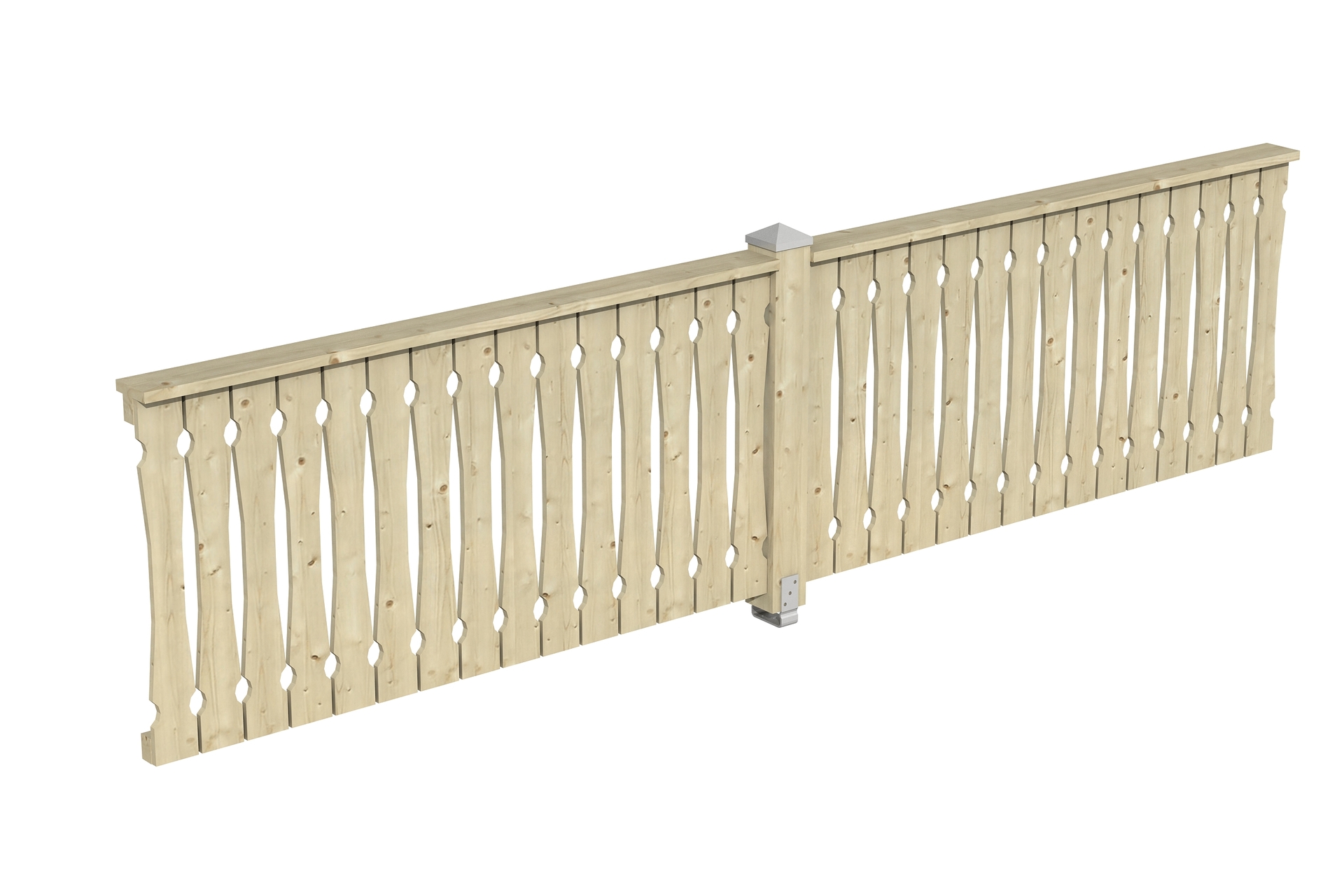 Die dekorative SKAN HOLZ Brüstung aus Balkonschalung eignet sich für SKAN HOLZ Terrassenüberdachungen und Pavillons aus Leimholz mit einem Pfostenabstand von 400 cm.