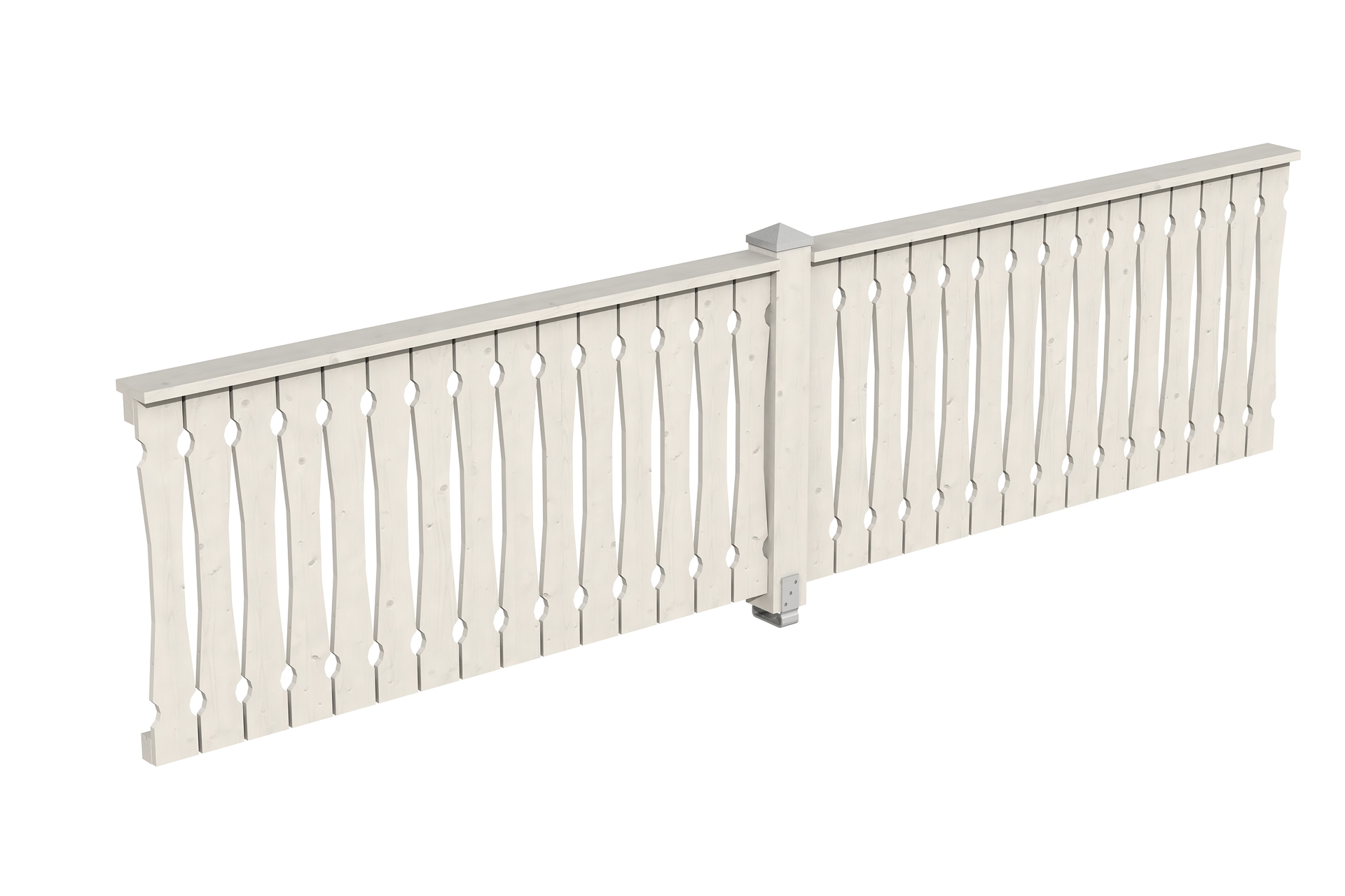 Die dekorative SKAN HOLZ Brüstung aus Balkonschalung eignet sich für SKAN HOLZ Terrassenüberdachungen und Pavillons aus Leimholz mit einem Pfostenabstand von 400 cm.