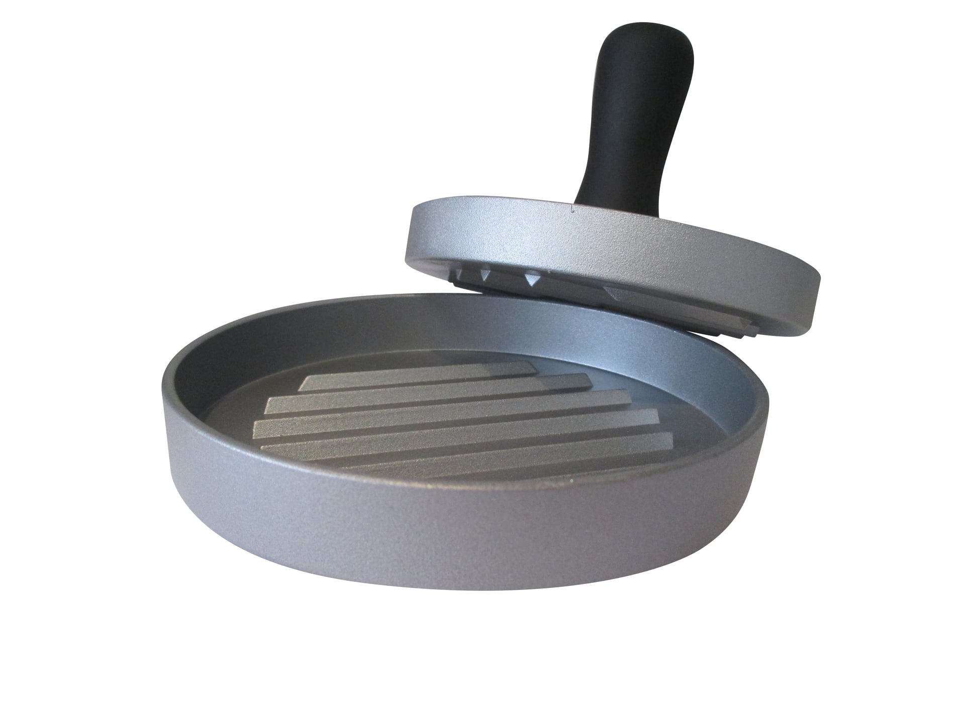 Die Burgerpresse aus Aluguss hat einen Durchmesser von 12 cm und ermöglicht ein einfaches und schnelles Formen von perfekt geformten Burgern.
