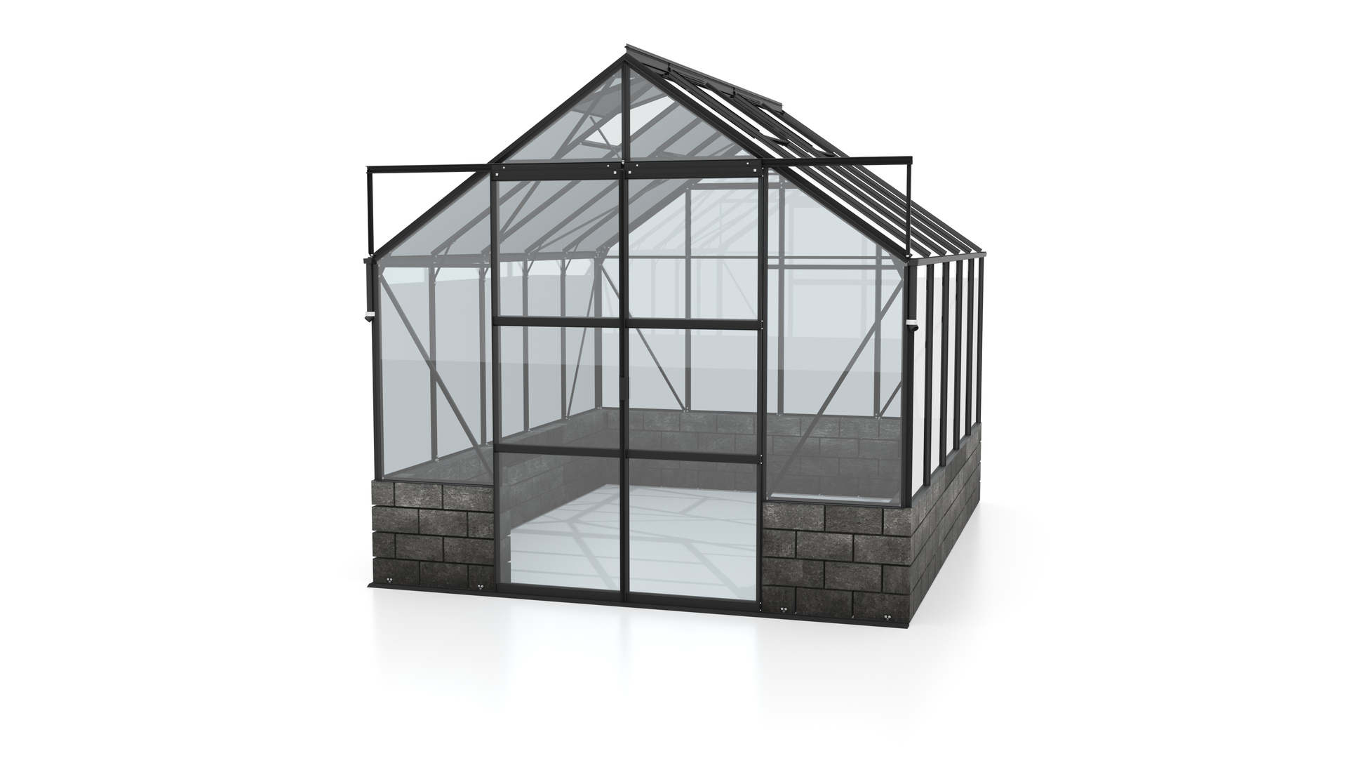 So wohnlich kann es im Grünen sein: Auf einem soliden Sockel stehend wird Ihr Gewächshaus schnell zum zweiten Zuhause und bringt dabei ein wenig englischen Stil in Ihren Garten. Das Cassandra hebt sich durch einen gemauerten Sockel vom klassischen, vollverglasten Gewächshaus ab: Der diskrete Sichtschutz, das freundliche Klima und die solide Gesamterscheinung verleihen dem Gewächshaus eine hohe Wohnlichkeit für viele gemütliche Stunden im eigenen Grün. Der Sockel kann mitbestellt oder nach eigenen Wünschen gestaltet werden. Das Set besteht aus dem Gewächshaus sowie dem Sockelbausatz aus 125 mm tiefen werksteinen. Die Steine sind in zwei Farben, Herbstlaub und Basalt, erhältlich. Leihcte Unregelmäßigkeiten in der Oberfläche und feine Farbnuancen ergeben ein wertiges Mauerbild in Naturstein-Optik. Auch die Pflanzen werden sich im Modell Cassandra wohlfühlen: Das Sicherheitsglas, kristallklar (ESG) lässt ein Maximum an Licht in Ihr Gewächshaus, in dem Gemüse, Obst, Kräuter und Zierpflanzen auf bis zu 11,5 m² und bis zu 2,49 m hoch wachsen dürfen. Jedes Vitavia Gewächshaus ist serienmäßig mit Regenrinnen ausgestattet. Hervorragend be- und entlüftet werden sie durch die vier mitgelieferten Dachfenster. Ob in Aluminium eloxiert oder Schwarz pulverbeschichtet: Dank ihrer Oberflächenbehandlung sind die Profile optimal gegen Korrosion und Verwitterung geschützt. Die kugelgelagerte Doppelschiebetür hat eine bodentiefe Türschwelle, eine Breite von 122 cm und eine Höhe von 194 cm. Sie läuft leichtgängig und bietet so einen komfortablen Zugang auch im Rollstuhl, mit dem Kinderwagen – oder natürlich mit der Schubkarre.
