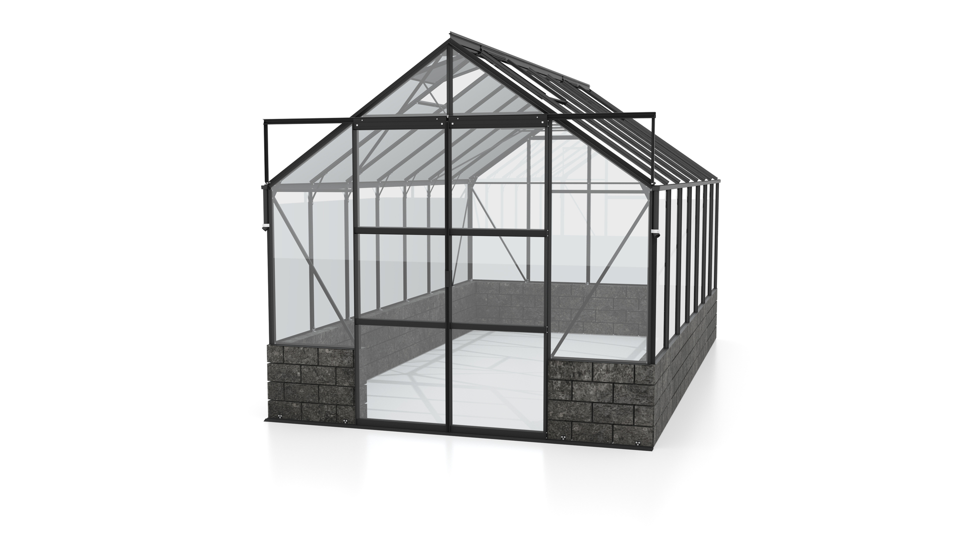 So wohnlich kann es im Grünen sein: Auf einem soliden Sockel stehend wird Ihr Gewächshaus schnell zum zweiten Zuhause und bringt dabei ein wenig englischen Stil in Ihren Garten. Das Cassandra hebt sich durch einen gemauerten Sockel vom klassischen, vollverglasten Gewächshaus ab: Der diskrete Sichtschutz, das freundliche Klima und die solide Gesamterscheinung verleihen dem Gewächshaus eine hohe Wohnlichkeit für viele gemütliche Stunden im eigenen Grün. Der Sockel kann mitbestellt oder nach eigenen Wünschen gestaltet werden. Das Set besteht aus dem Gewächshaus sowie dem Sockelbausatz aus 125 mm tiefen werksteinen. Die Steine sind in zwei Farben, Herbstlaub und Basalt, erhältlich. Leihcte Unregelmäßigkeiten in der Oberfläche und feine Farbnuancen ergeben ein wertiges Mauerbild in Naturstein-Optik. Auch die Pflanzen werden sich im Modell Cassandra wohlfühlen: Das Sicherheitsglas, kristallklar (ESG) lässt ein Maximum an Licht in Ihr Gewächshaus, in dem Gemüse, Obst, Kräuter und Zierpflanzen auf bis zu 11,5 m² und bis zu 2,49 m hoch wachsen dürfen. Jedes Vitavia Gewächshaus ist serienmäßig mit Regenrinnen ausgestattet. Hervorragend be- und entlüftet werden sie durch die vier mitgelieferten Dachfenster. Ob in Aluminium eloxiert oder Schwarz pulverbeschichtet: Dank ihrer Oberflächenbehandlung sind die Profile optimal gegen Korrosion und Verwitterung geschützt. Die kugelgelagerte Doppelschiebetür hat eine bodentiefe Türschwelle, eine Breite von 122 cm und eine Höhe von 194 cm. Sie läuft leichtgängig und bietet so einen komfortablen Zugang auch im Rollstuhl, mit dem Kinderwagen – oder natürlich mit der Schubkarre.