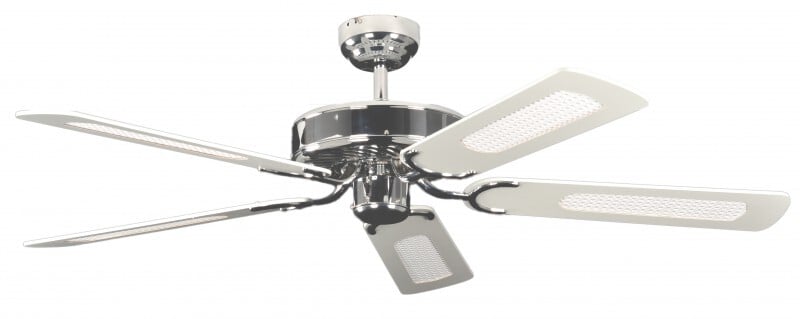 Deckenventilator Potkuri Stahl, Flügel Weiß mit Rattaneinlage, 132 cm