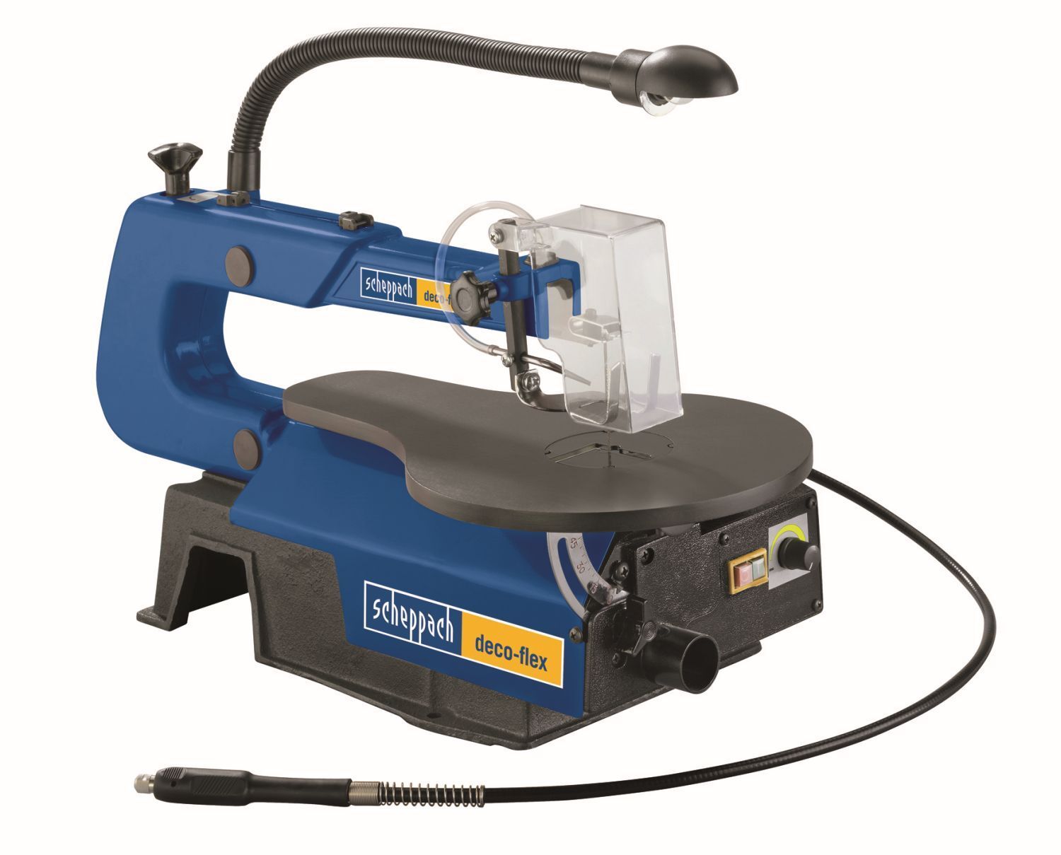 Die Scheppach Dekupiersäge deco-flex ist ein 2 in 1 Gerät: eine Dekupiersäge mit biegsamer Welle und Bohrfutter. durch die Einspannhilfe eignet sich diese Säge auch für Sägeblätter ohne Querstift.
