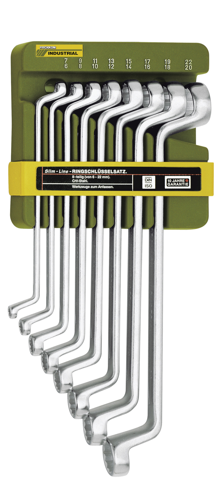 Slim Line-Doppelringschlüssel 8-teiliger Satz. Komplett mit Halter.