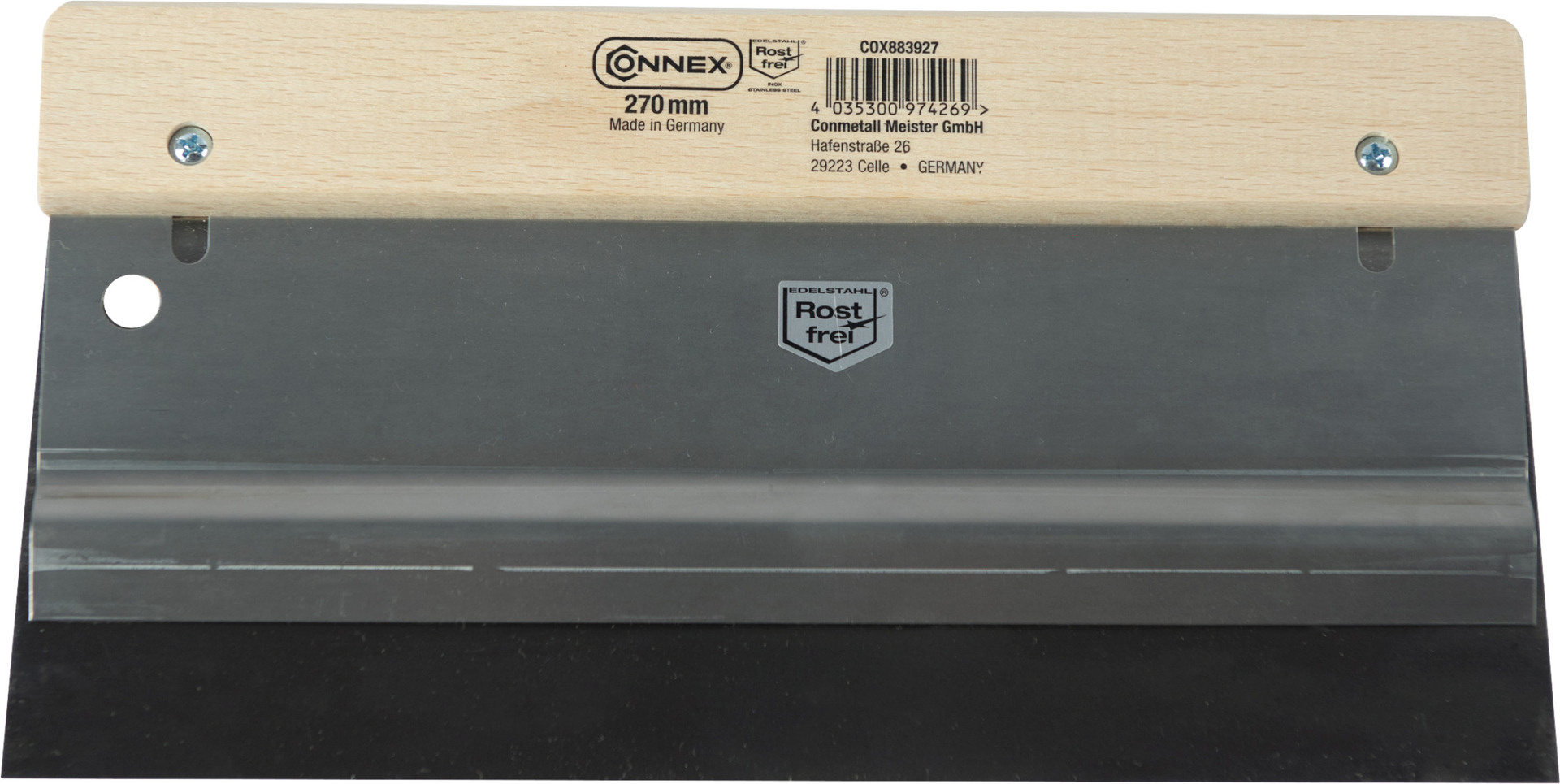 Der Doppelblattspachtel von CONNEX ist ein handliches Werkzeug, welches sich für diverse Renovierungs- und Bauarbeiten eignet. Das Spachtelblatt besteht aus rostfreiem Edelstahl und verfügt über ein verstellbares Gegenblech, was der Bildung von Spachtelgraten entgegenwirkt. Des Weiteren sind die Klingen fein poliert und die Arbeitskanten leicht abgerundet. In unserem Onlineshop erhalten Sie diesen Artikel in verschiedenen Größen.