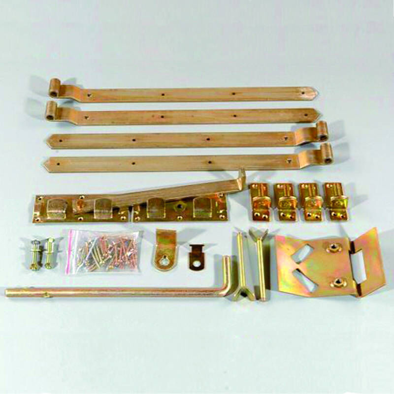 Doppeltor-Beschlag Der Doppeltor Beschlag ist aus verzinktem Metall und für Vorgarten-Tore der Serie HEIKO, sowie für Jäger- und Senkrechtzäune geeignet. Der Beschlag besteht aus Torbändern und Drückergarnitur, beides ist gelb verzinkt. Die Bänderlänge beträgt ca. 60 cm.