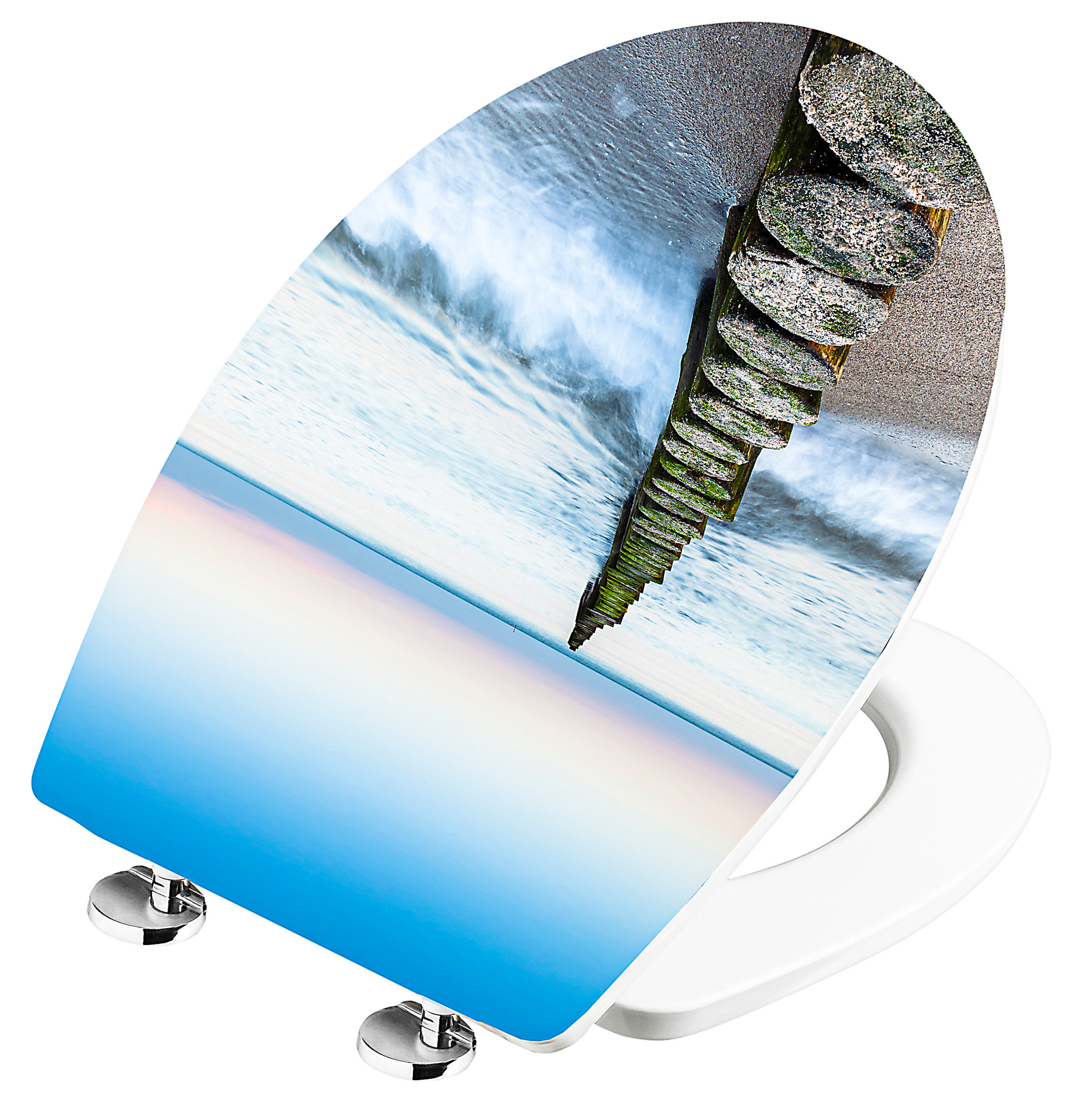 WC-Sitz BUHNEN Duroplast, Relief-Motiv, Hochwertige und solide Scharniere mit Absenkautomatik, Quick up and clean – zur Reinigung problemlos abnehmbar, ohne Scharnierdemontage, Gewicht mit Scharnieren: 2,7 kg, Farbe: Dekor Dem WC-Sitz liegt ein WC-Sitz Wackel STOPP Set bei.