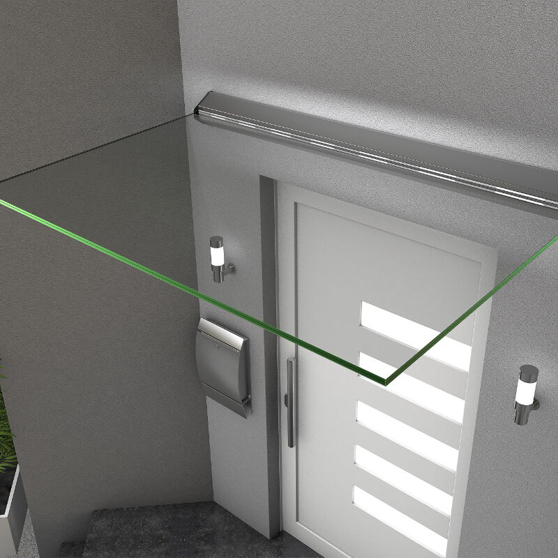 Echtglasvordach Flensburg Das Echtglasvordach Flensburg besitzt zwei 8 mm starke Verbundglasscheiben. Neben einer eleganten und zeitlos schönen Optik, ist das Vordach auch enorm robust und langlebig in Premium-Qualität für höchste Ansprüche. Schon tagsüber besticht die hochwertige Ausführung. Zum Blickfang Ihrer Fassade wird das Echtglasvordach erst recht bei Dunkelheit: Mit der raffinierten LED-Beleuchtung, die praktischen Nutzen mit unverwechselbarem Design verbindet. Ein Band ist nach unten auf den Eingangsbereich gerichtet und sorgt so für eine gleichmäßige Ausleuchtung. Das zweite Band strahlt sein Licht in Richtung der beiden, jeweils 8 Millimeter starken Glasplatten und schafft besondere Akzente und ein raffiniertes Spiel von Licht und Schatten. Zum markanten Blickfang werden etwa die typisch grünen Kanten der beiden verbundenen Glasplatten, die dank der Durchleuchtung buchstäblich erstrahlen. Das Echtglasvordach wurde mit einer Schneelast von 150 kg/m² getestet. Passendes Montagematerial (z.B. Schrauben und Dübel) für festes Mauerwerk ist bei dem Echtglasvordach enthalten. Eine passende Seitenblende ist ebenfalls in unserem Onlineshop erhältlich.