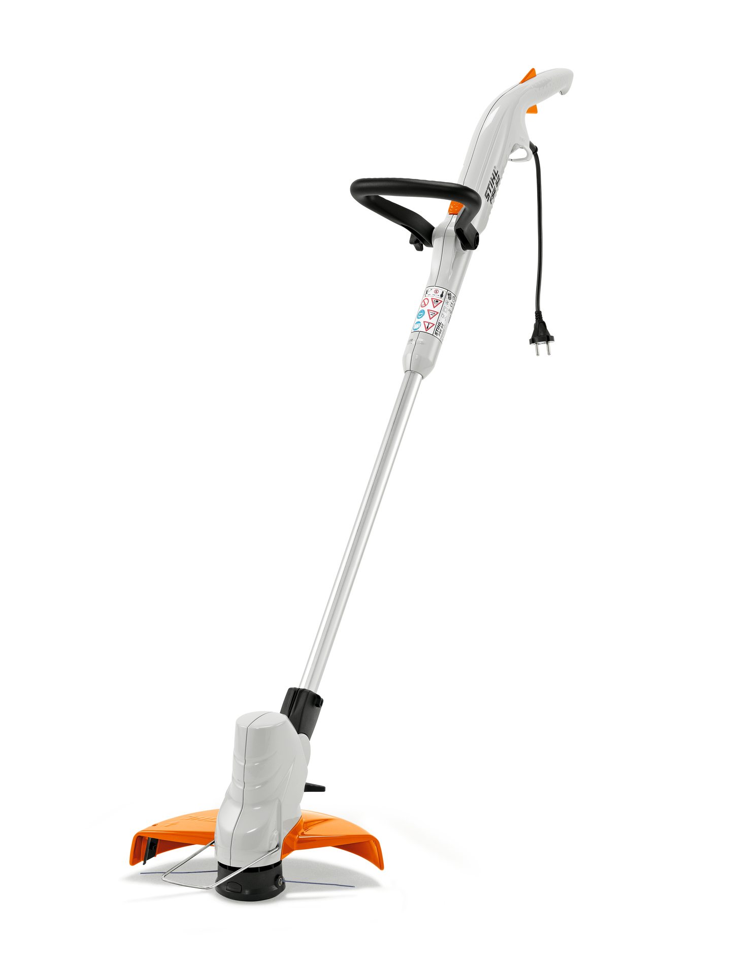 Leichte, leise und kraftvolle Elektro-Motorsense in modernem, funktionalem Design, mit verbesserter Ausstattung (Abstandbügel aus Draht) und neuem AutoCut 2-2 Mähkopf. Ideal für alle Trimm- und Ausputzarbeiten im Hausgarten.