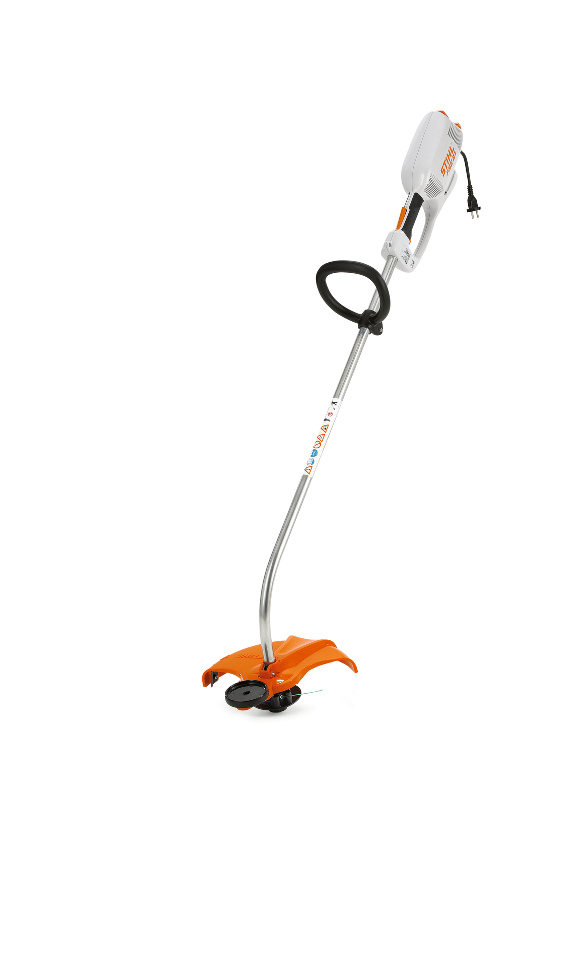 Ideal zum Mähen kleinerer Wildwuchsflächen. Softgriff, Bügelgriff, elektronischer Überlastschutz, Tastrad, durch Tippen des Mähkopfs auf den Boden stellt sich der Mähfaden automatisch nach.