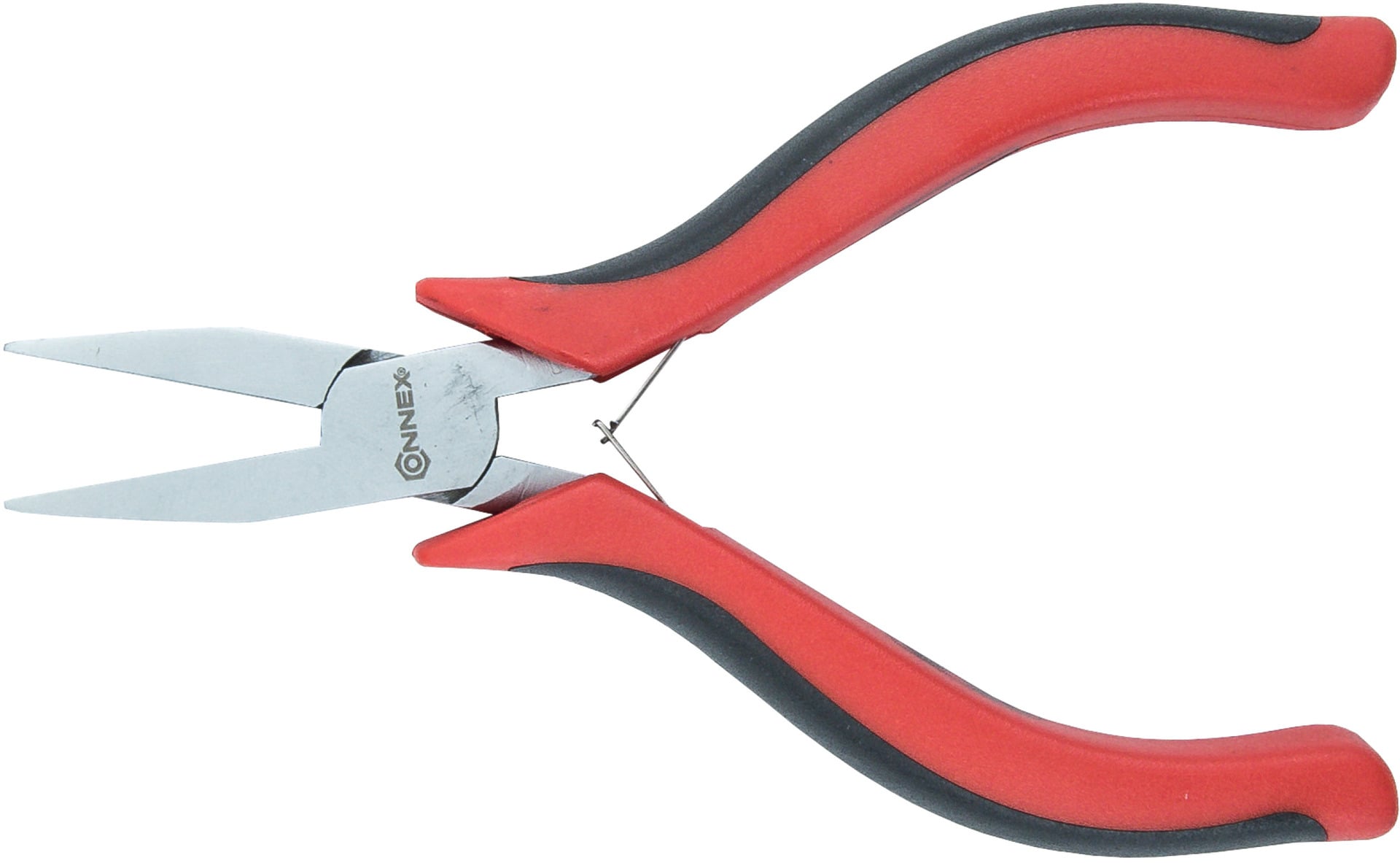 Diese Flachzange aus dem Hause CONNEX ist hervorragend für Arbeiten an elektronischen Geräten geeignet und liegt dank ihrer kompakten Form angenehm in der Hand. Mit den Zwei-Komponenten-Griffen und der integrierten Doppelfeder können Sie das Werkzeug präzise bedienen, für einen stabilen Griff sorgen dabei die breiten Metallbacken. So können Sie bspw. Leiterplatten und Stecker mühelos einsetzen oder entnehmen.