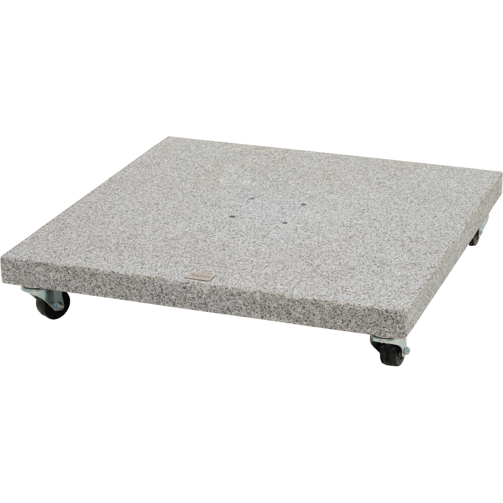 Der ENNIO Ampelschirmständer sorgt für maximale Flexibilität: Mithilfe seiner vier leichtgängigen Rollen lässt er sich frei bewegen und durch die Feststellbremsen ideal platzieren. Mit einem Gewicht von 90 kg und durch die robuste Granitplatte sorgt er für den optimalen Halt des Ampelschirms.