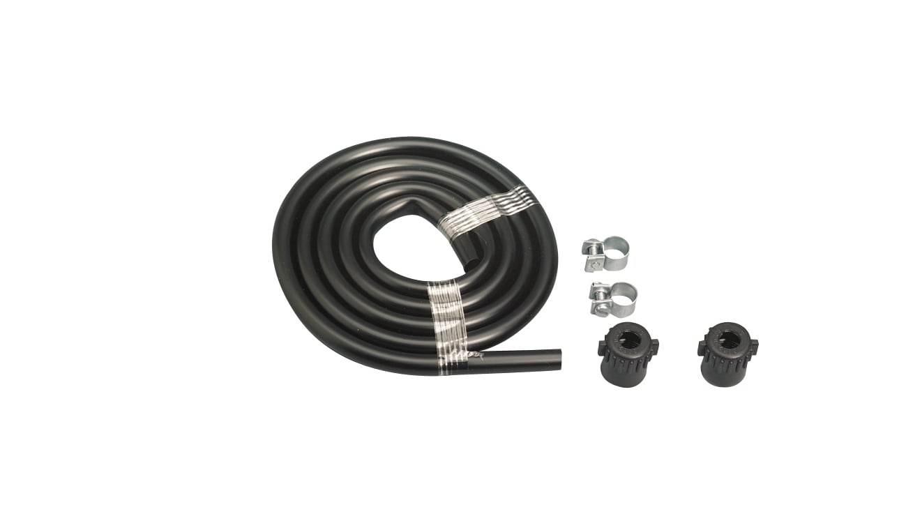 Ersatz-Spritzschlauch mit 2 Schneckengewindeschellen und 2 Schlauchanschlussmuttern.
